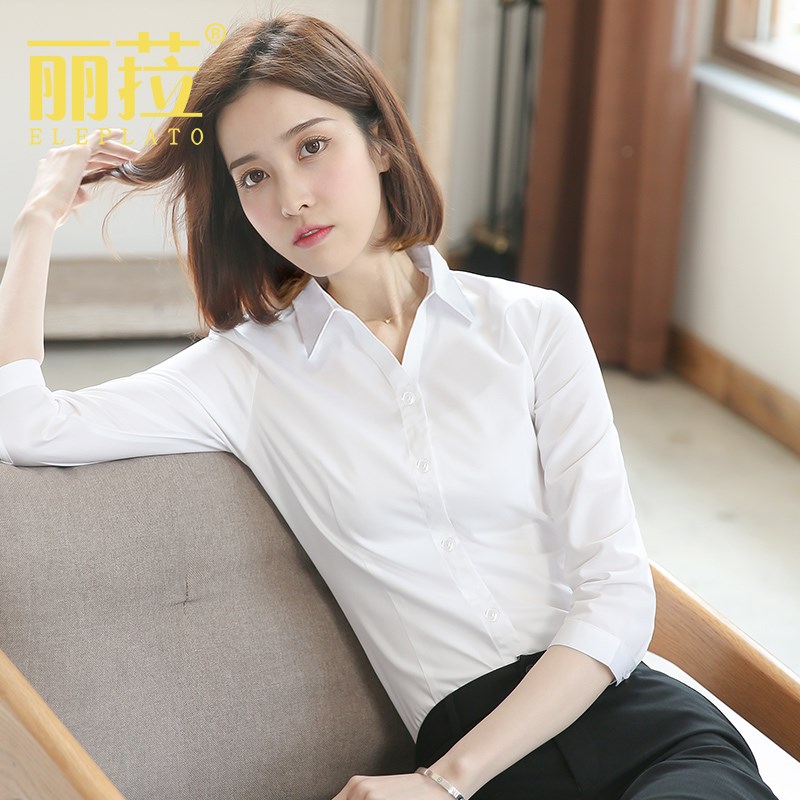 白衬衫女V领七分袖夏季新款中袖正装工作服薄款职业装白色衬衣夏