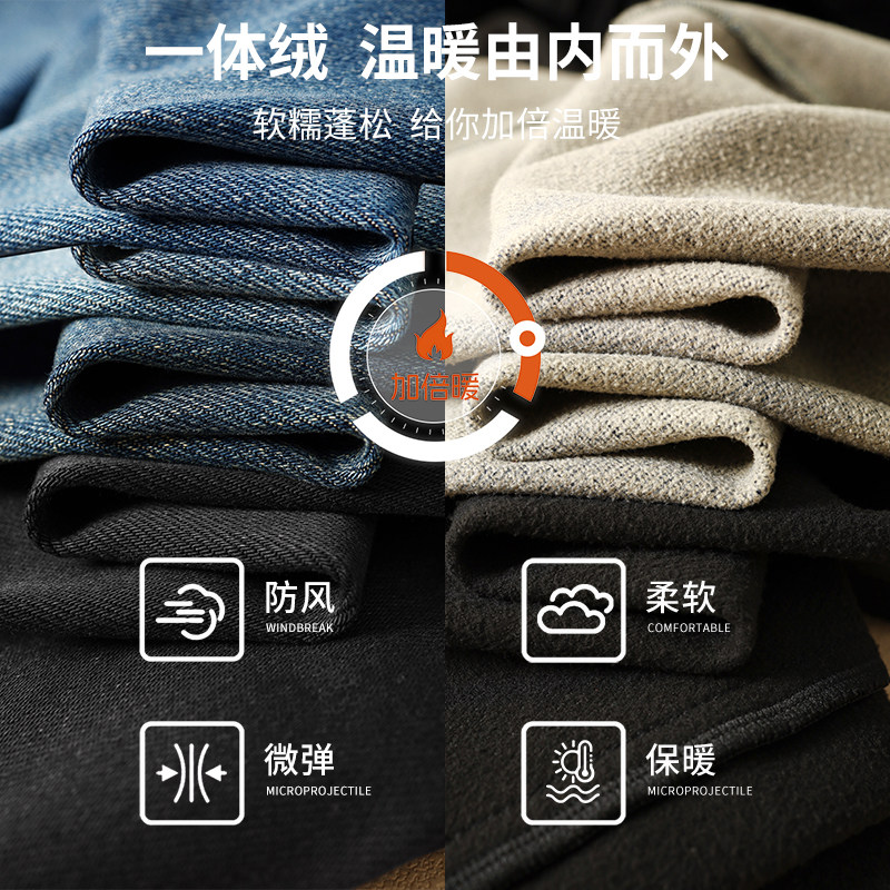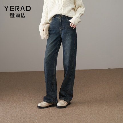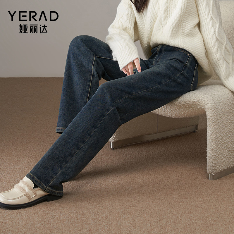 娅丽达2025新款雪绒直筒牛仔裤女冬季保暖大码女裤拖地窄版阔腿裤