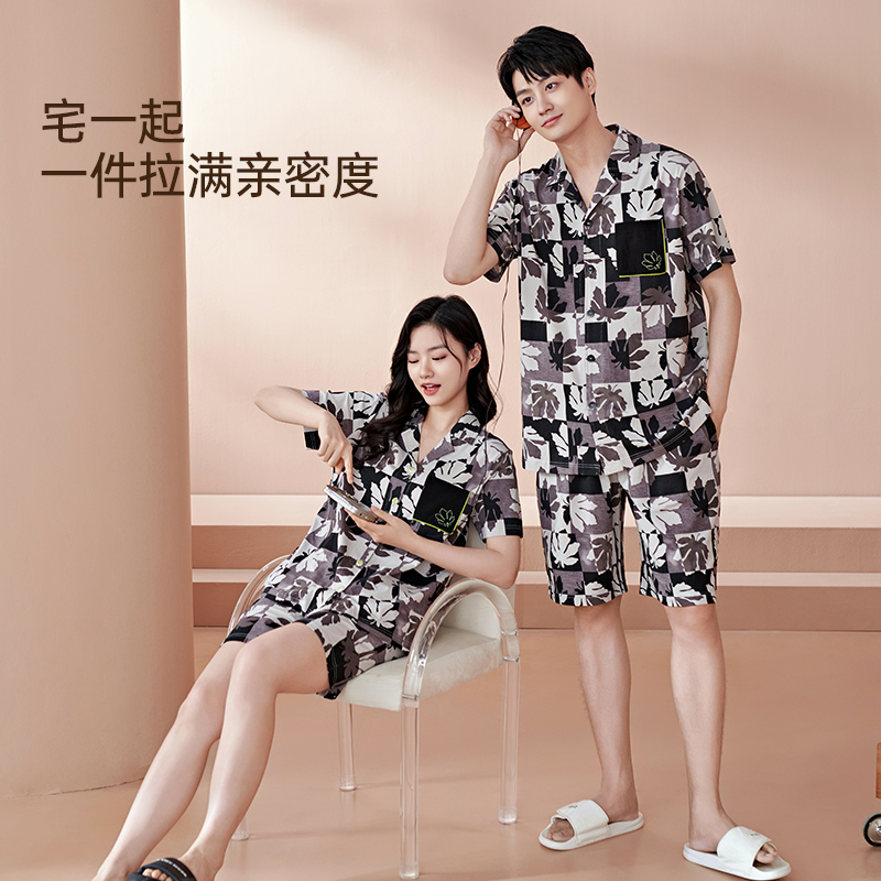 玛伦萨【5A抗菌】情侣睡衣纯棉夏季新款宽松大码男女士家居服套装
