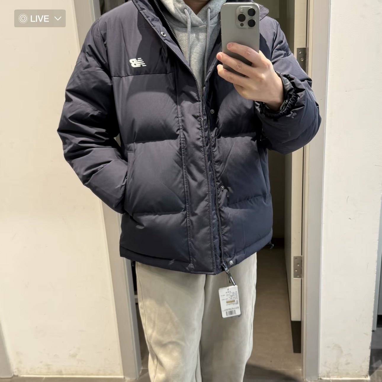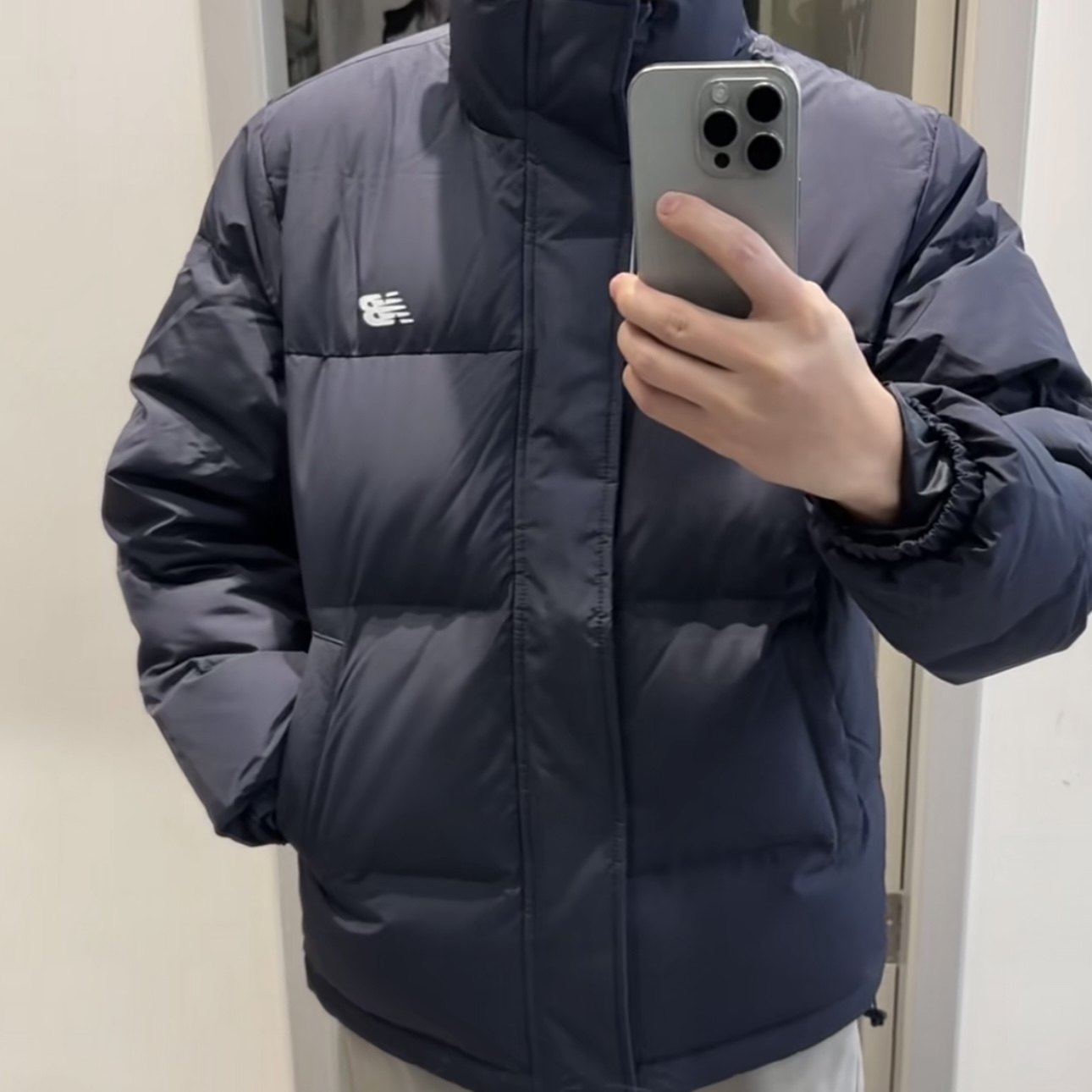 New Balance宽松保暖防风立领鸭绒运动休闲羽绒服男款AMJ53390-BK