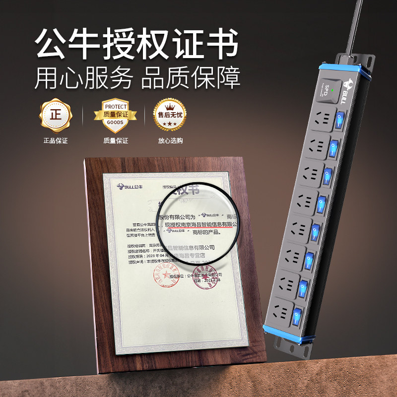 公牛pdu排插独立开关多孔位分控桌面电竞USB快充插座机柜防雷插排