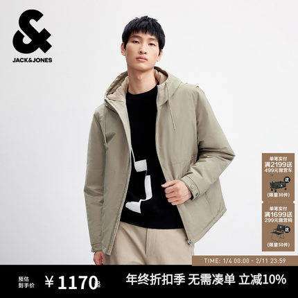 杰克琼斯男装棉服春季新款宽松连帽简约纯色可拆卸两件装保暖外套