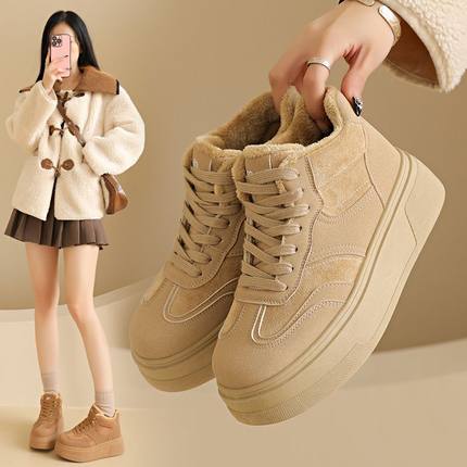韩版加绒高帮鞋女2025冬季学生运动跑步鞋休闲鞋厚底增高SL20M
