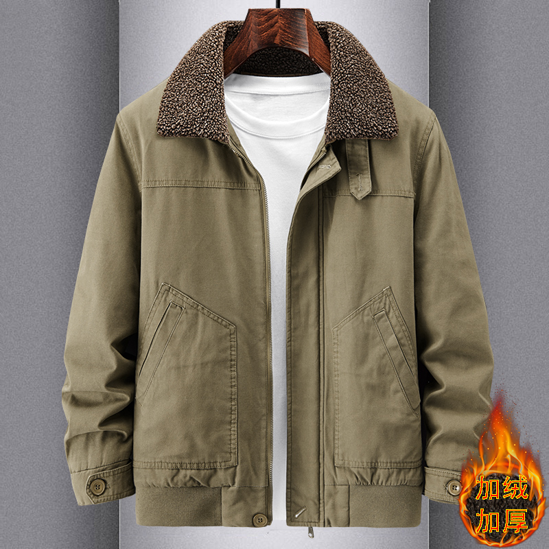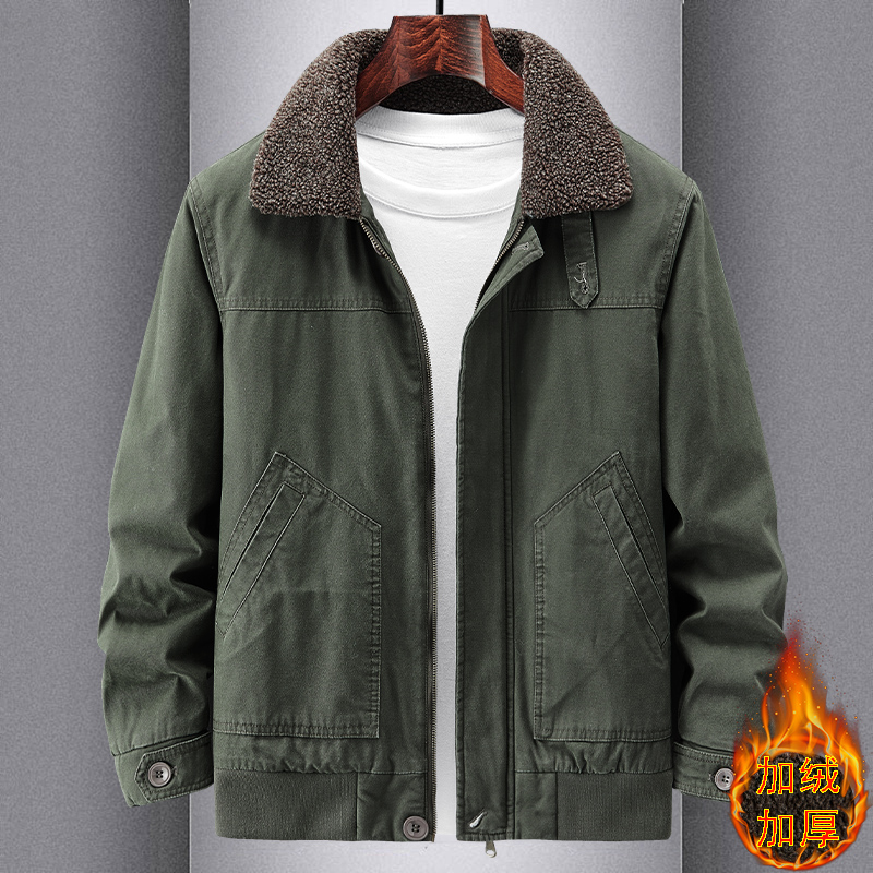 冬季翻领加绒加厚夹克男