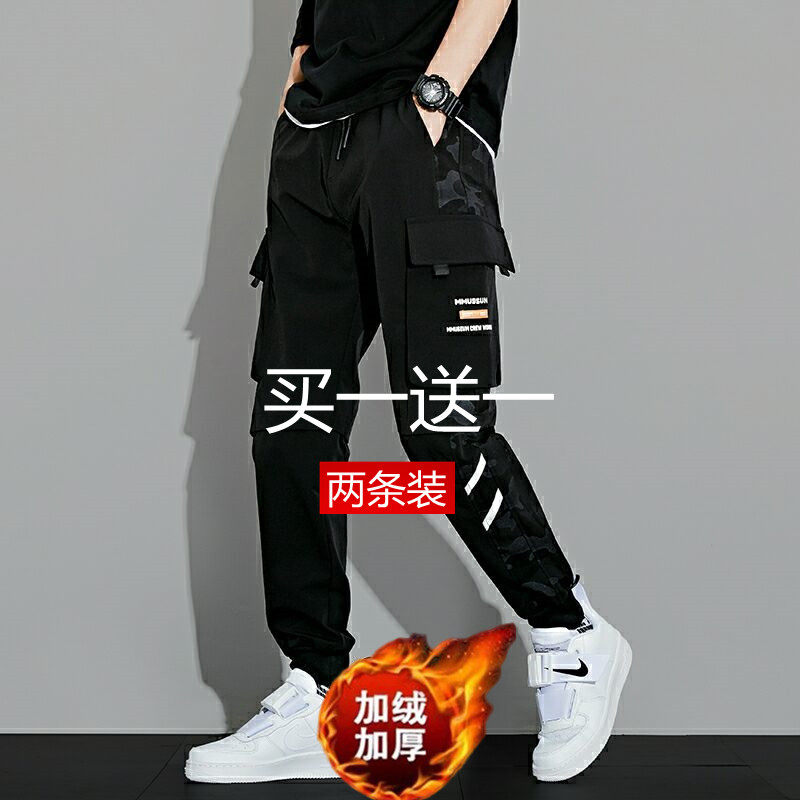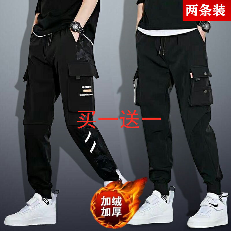 秋冬季加绒工装裤男休闲长裤修身运动裤秋冬款潮流男生哈伦束脚裤