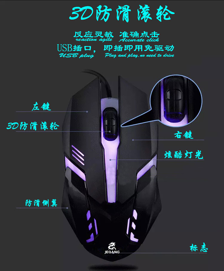 杰强JM-318有线笔记本台式机电脑鼠标 编织绳usb游戏办公光电鼠标