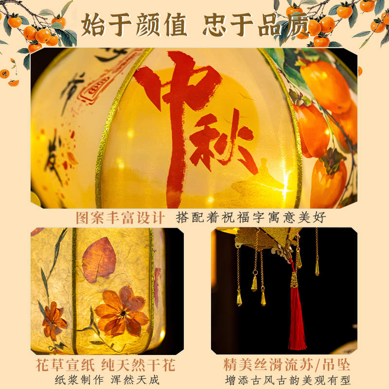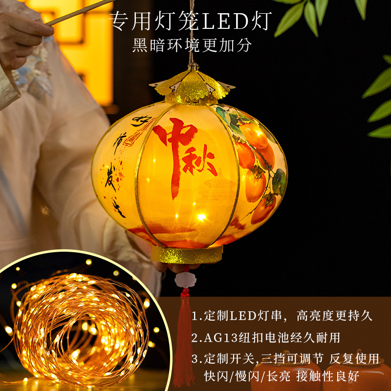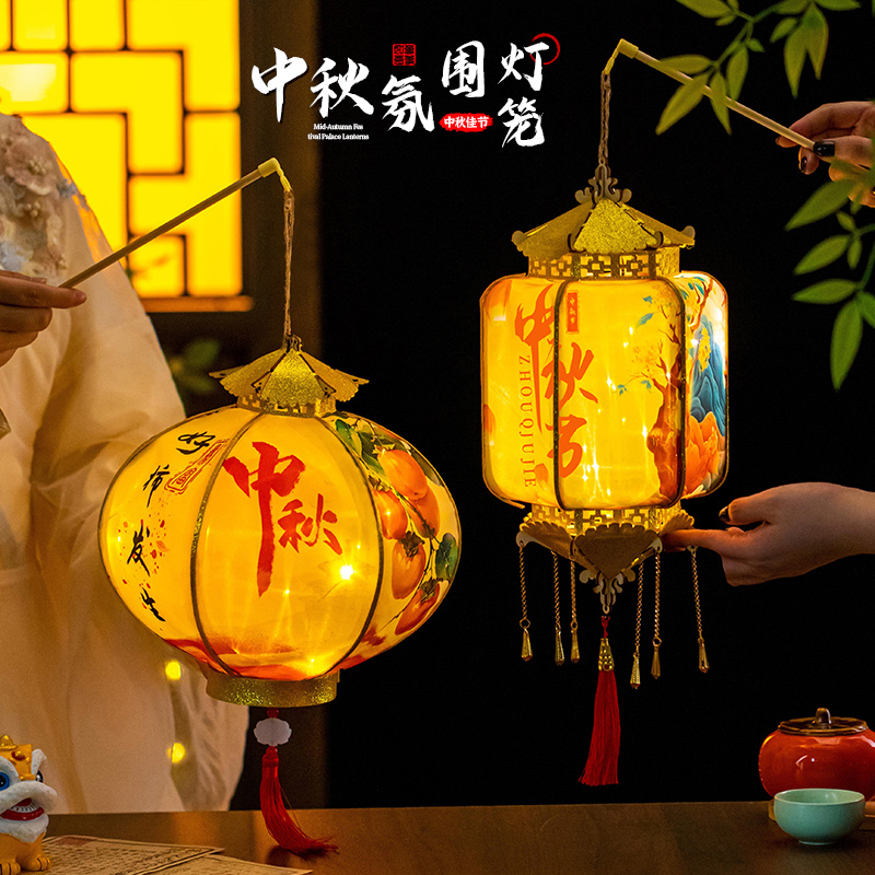 中秋节灯笼儿童手提宫灯手工diy材料包古风发光花灯户外汉服拍照