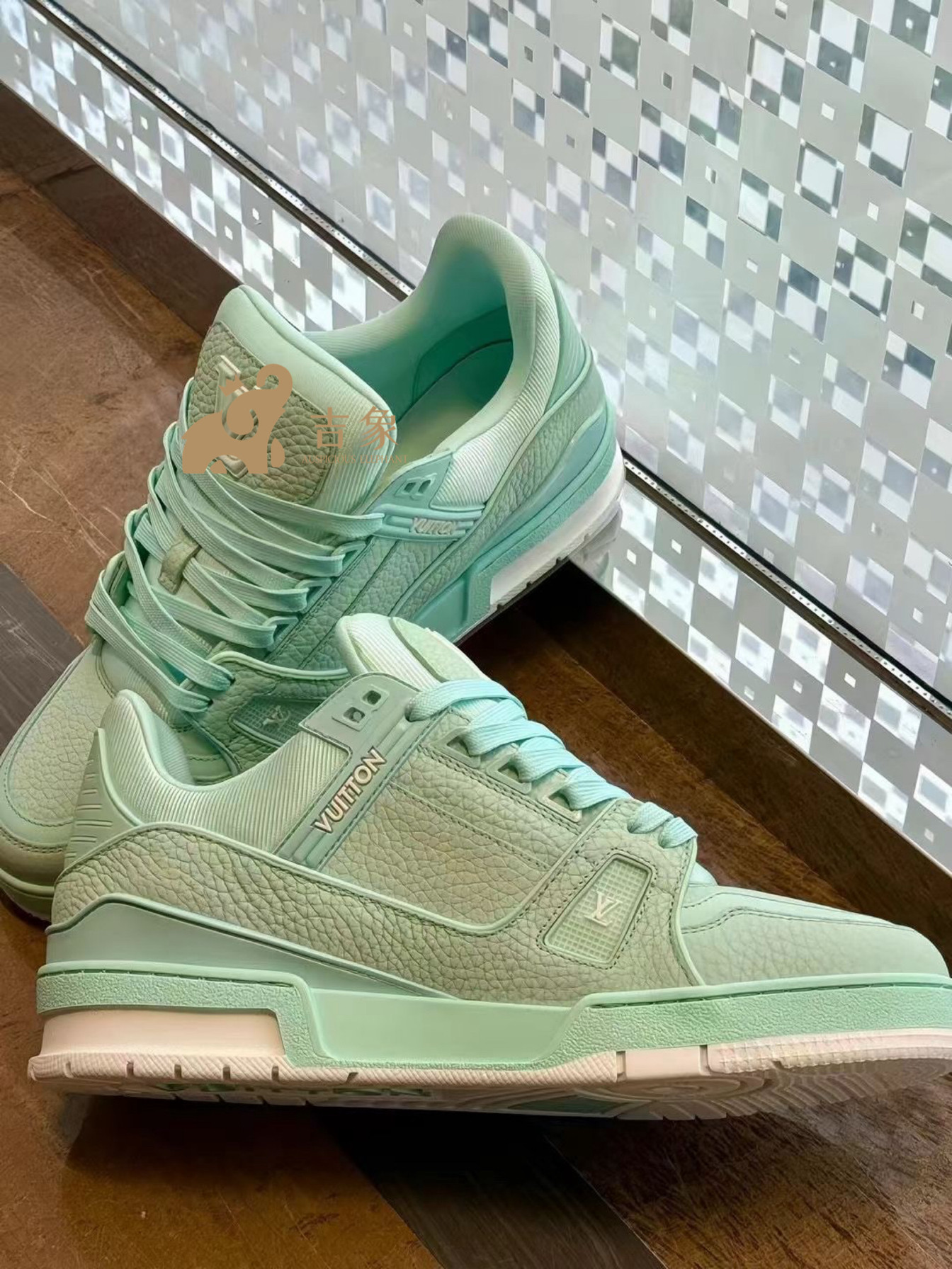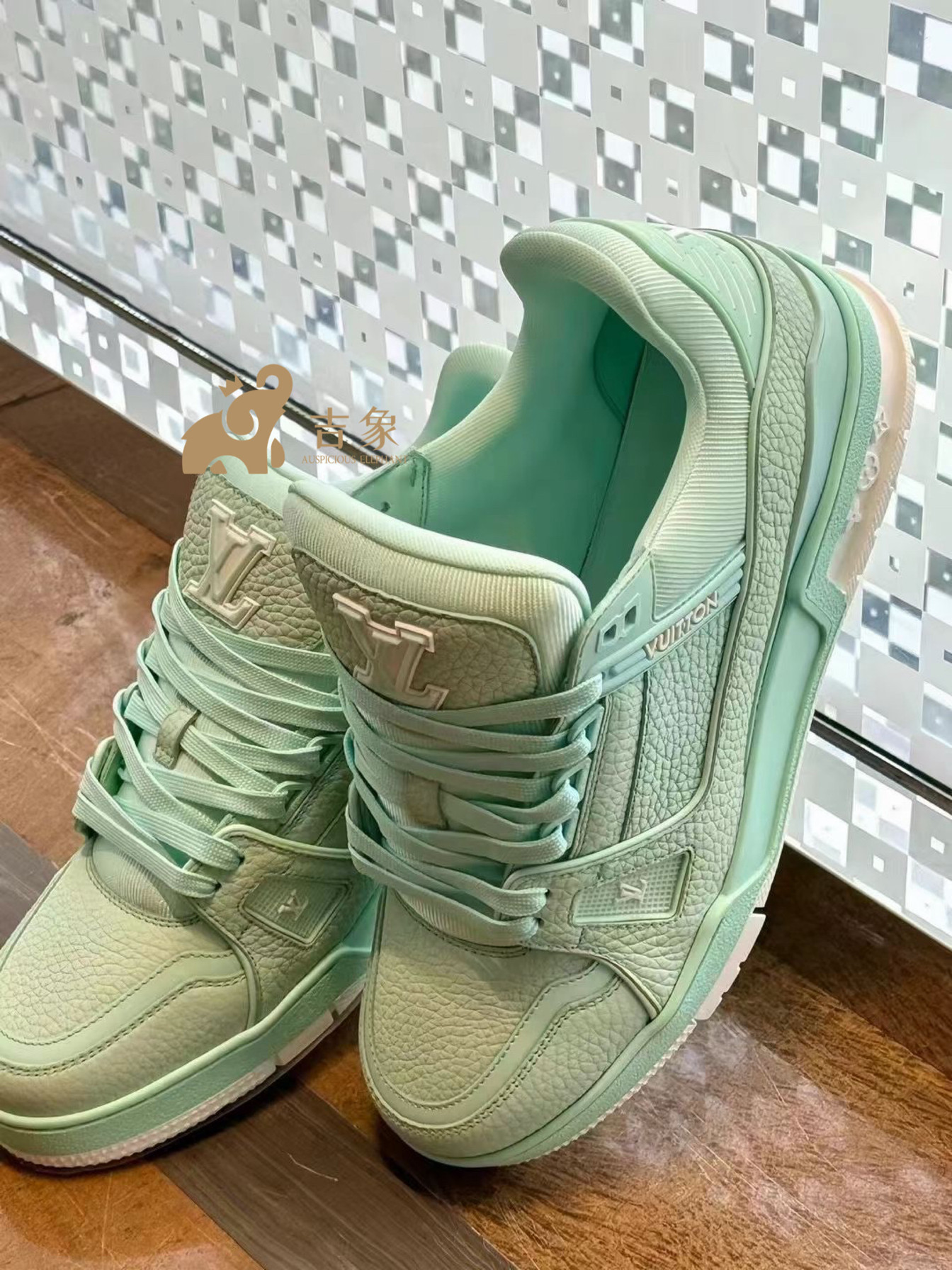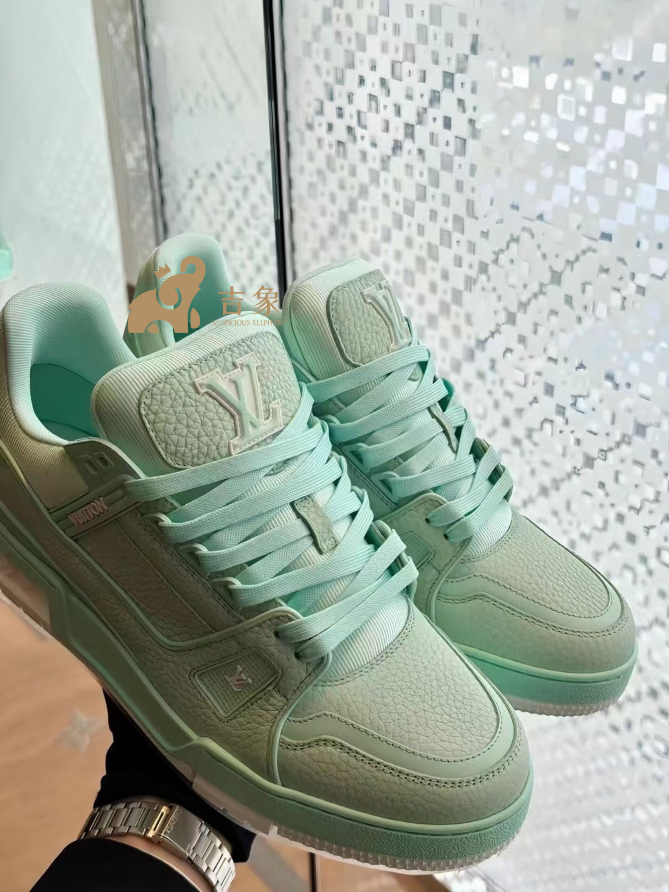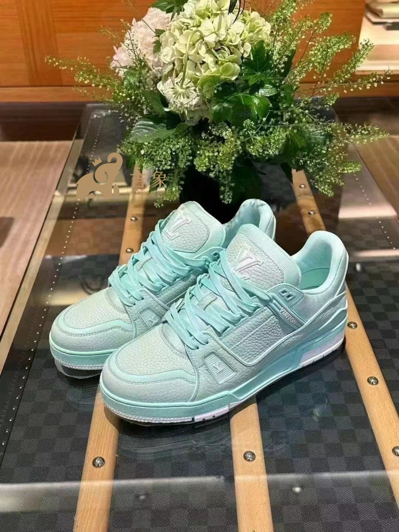 Lv路易威登2024新款男鞋青色粒面牛皮革Trainer 运动鞋板鞋1ACQ82