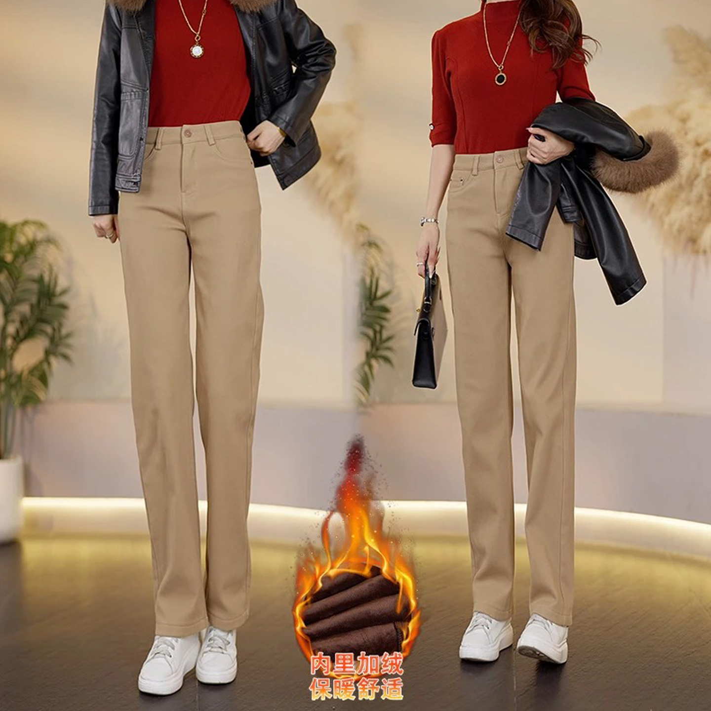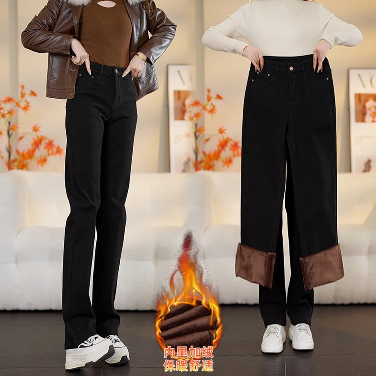 加绒白色牛仔裤女2025新款秋冬季