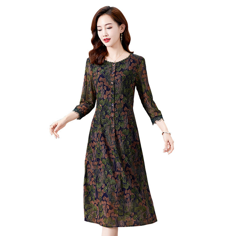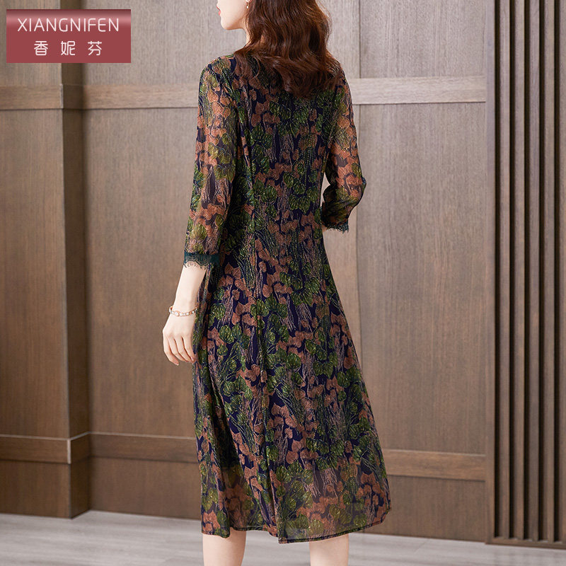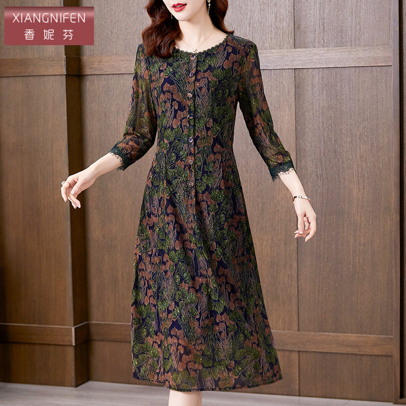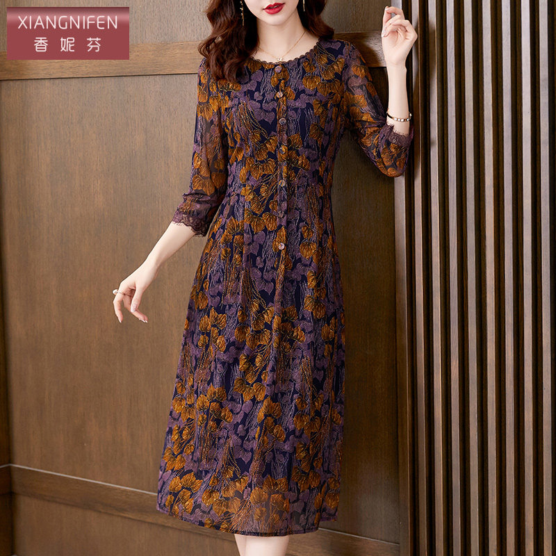 香妮芬气质台湾纱连衣裙女2025新款秋季中年妈妈碎花休闲中腰显瘦
