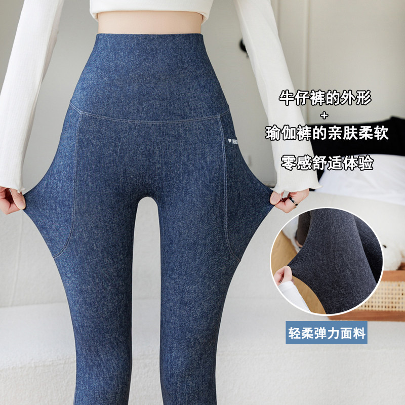 牛仔鲨鱼裤女外穿2025秋季薄款瑜伽打底裤提臀收腹健身运动小脚裤