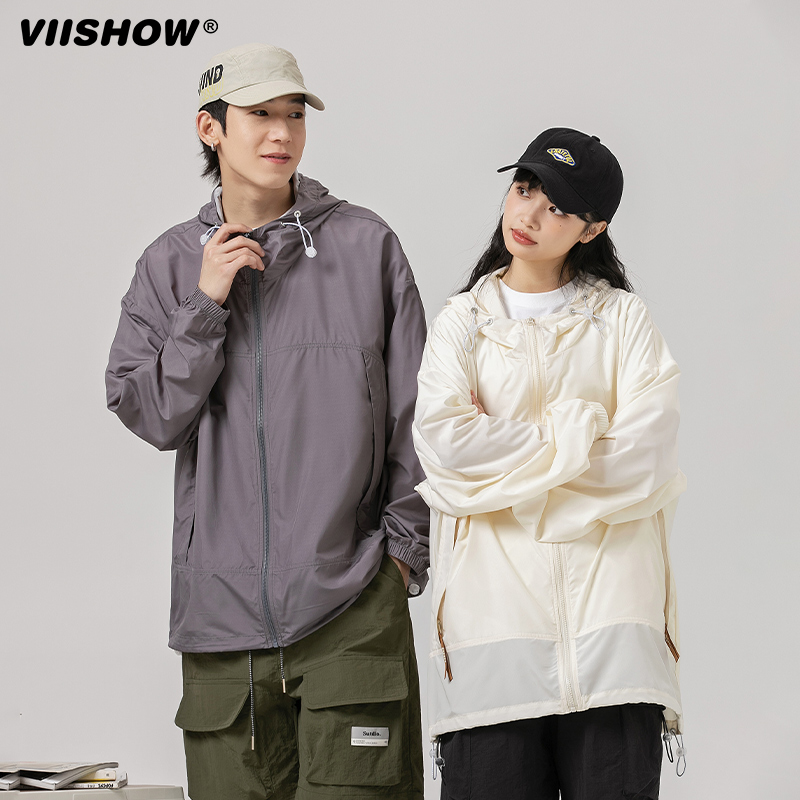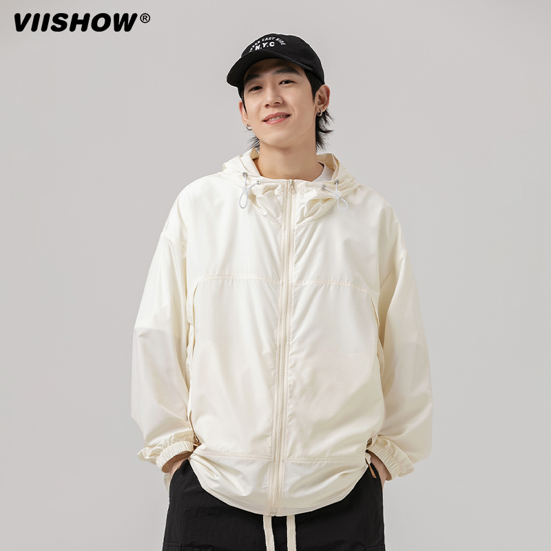 VIISHOW复古日系纯色防晒衣男士夏季UPF50+防晒服轻薄透气皮肤衣