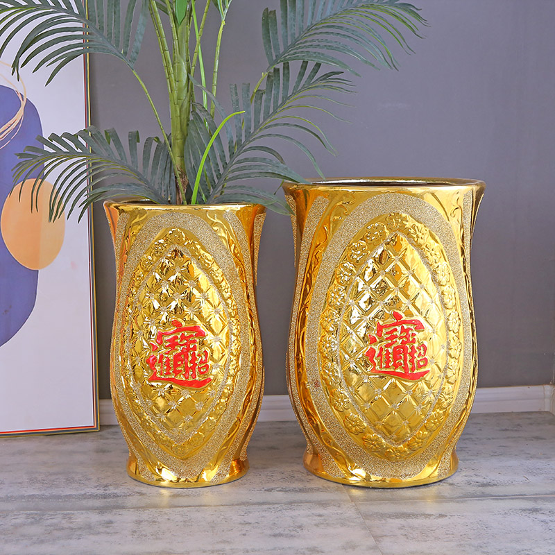 新款金色高筒陶瓷花盆特大号招财进宝金钱树散尾绿植盆栽室内客厅