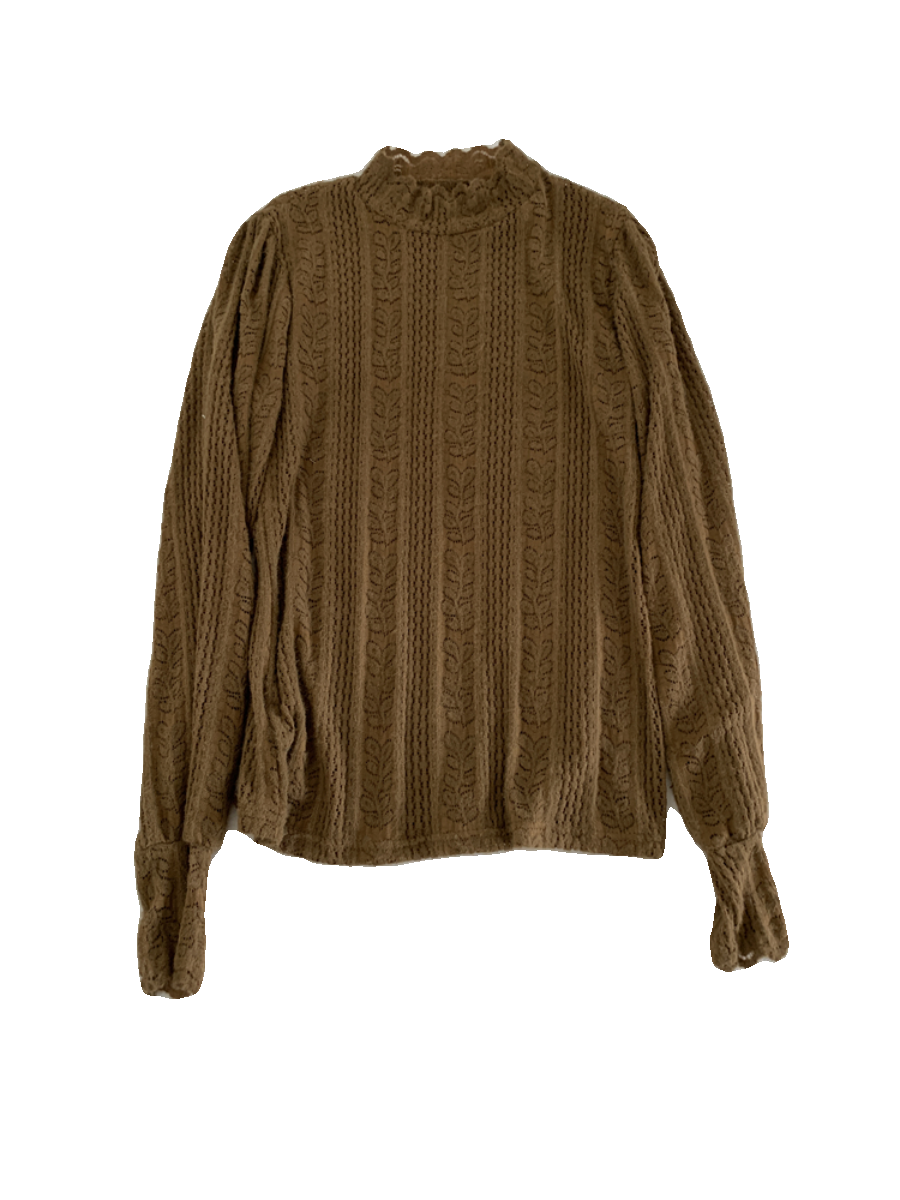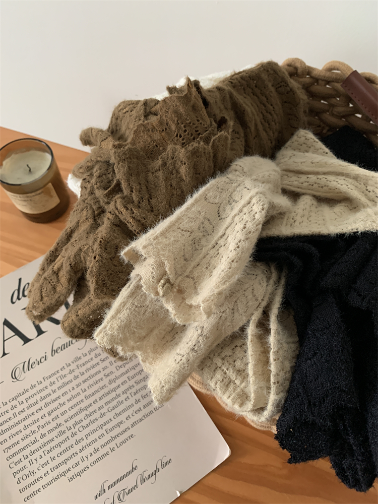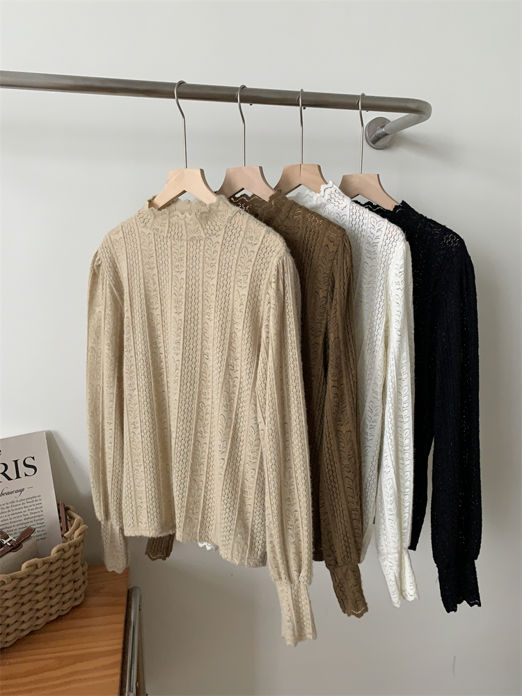 秋冬毛绒感内搭T恤法式复古蕾丝中领长袖上衣气质百搭套头打底衫