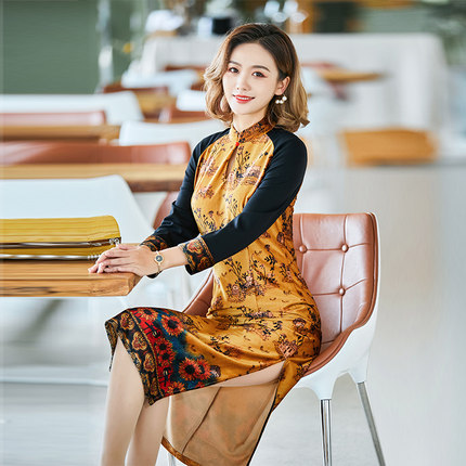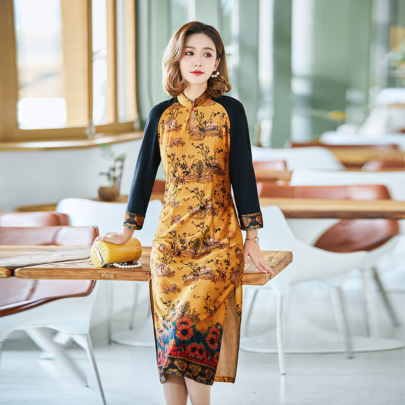 秋冬新款复古中国风旗袍中长款气质民族风女装年轻少女长袖连衣裙