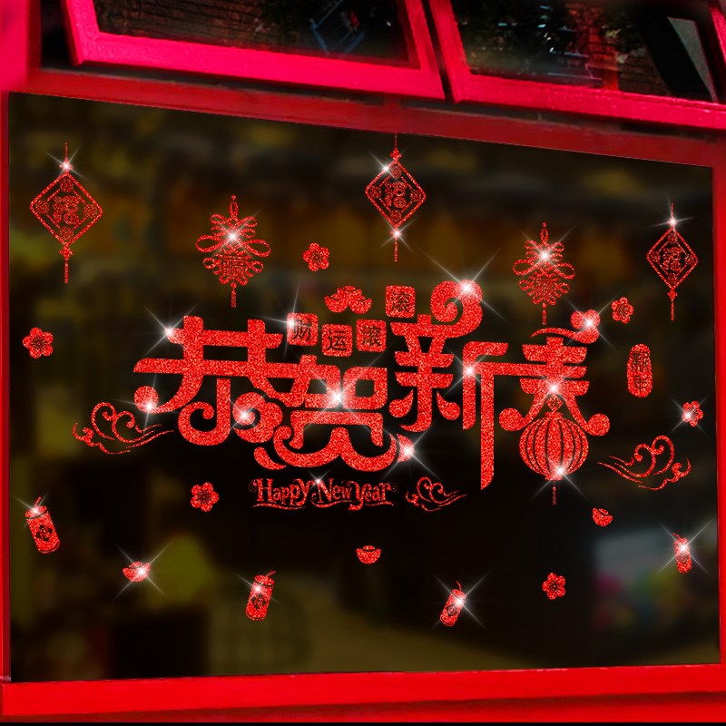 2025福字年画贴纸过新年烫金闪粉装饰品春节玻璃门贴窗花贴画自粘