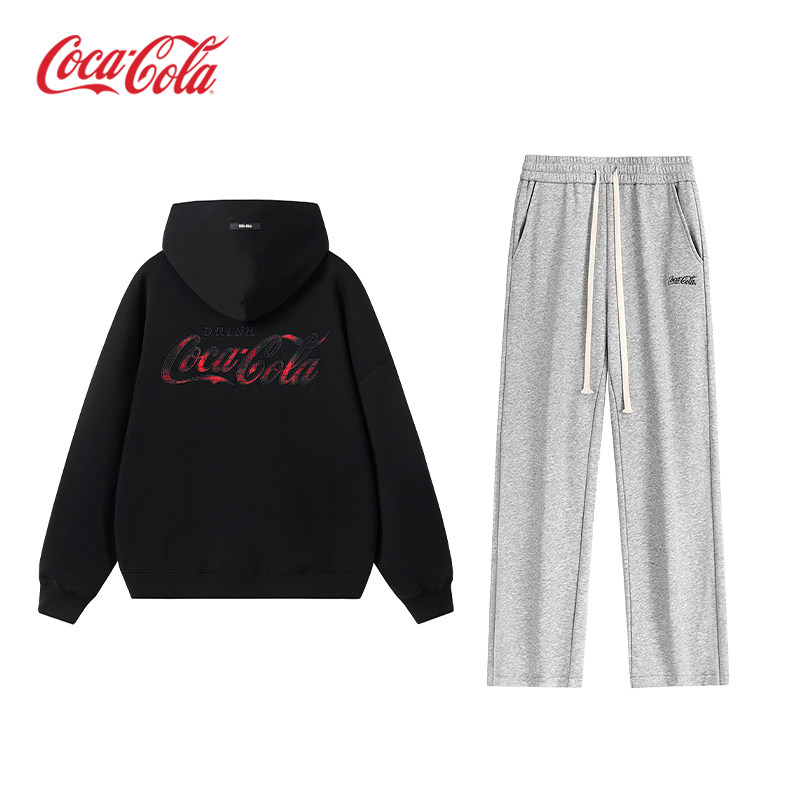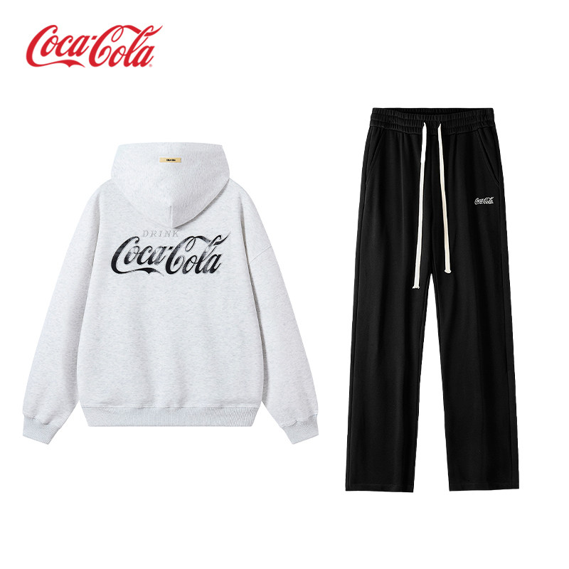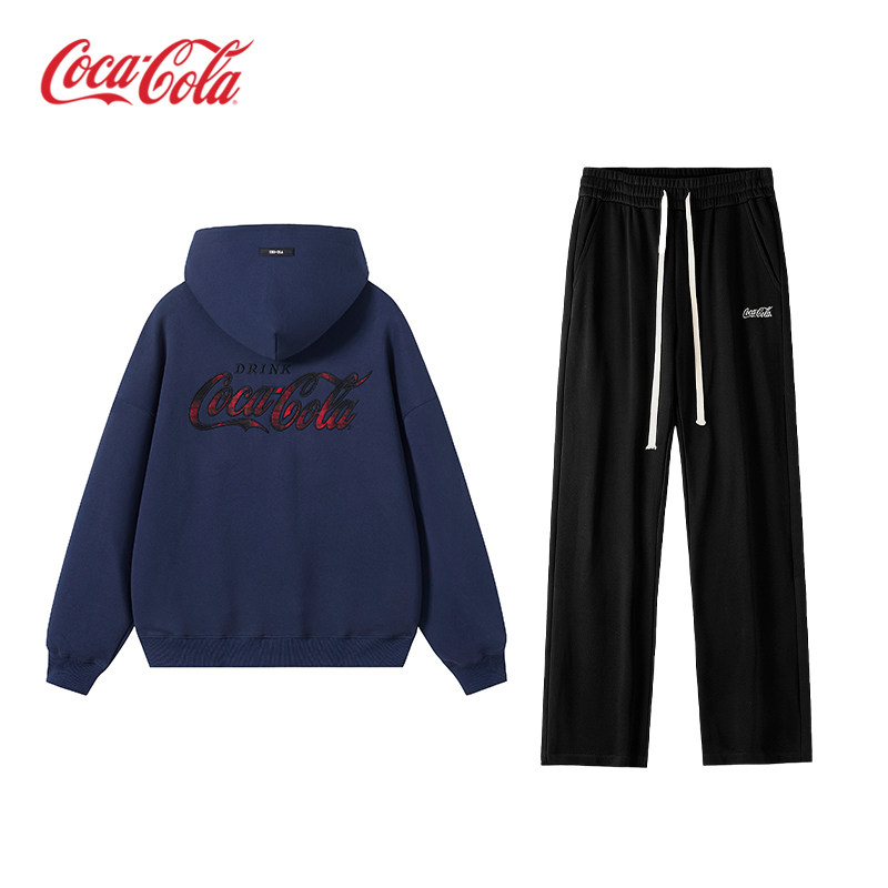 Coca-Cola/可口可乐 美式秋冬款休闲运动裤连帽卫衣套装 男女同款