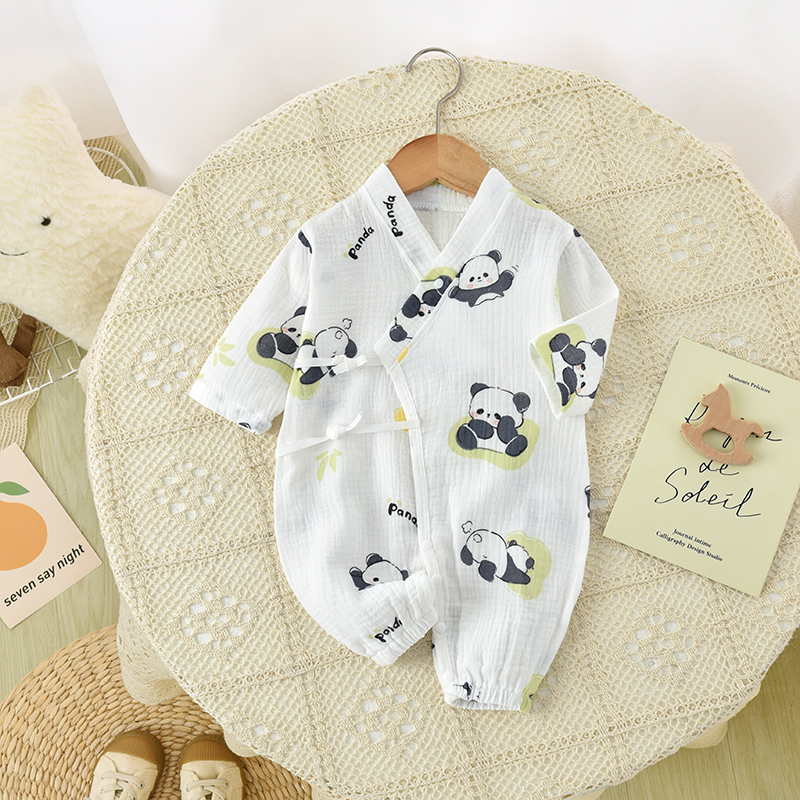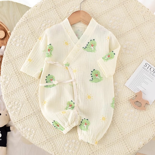 婴儿连体衣夏季薄款偏襟纱布