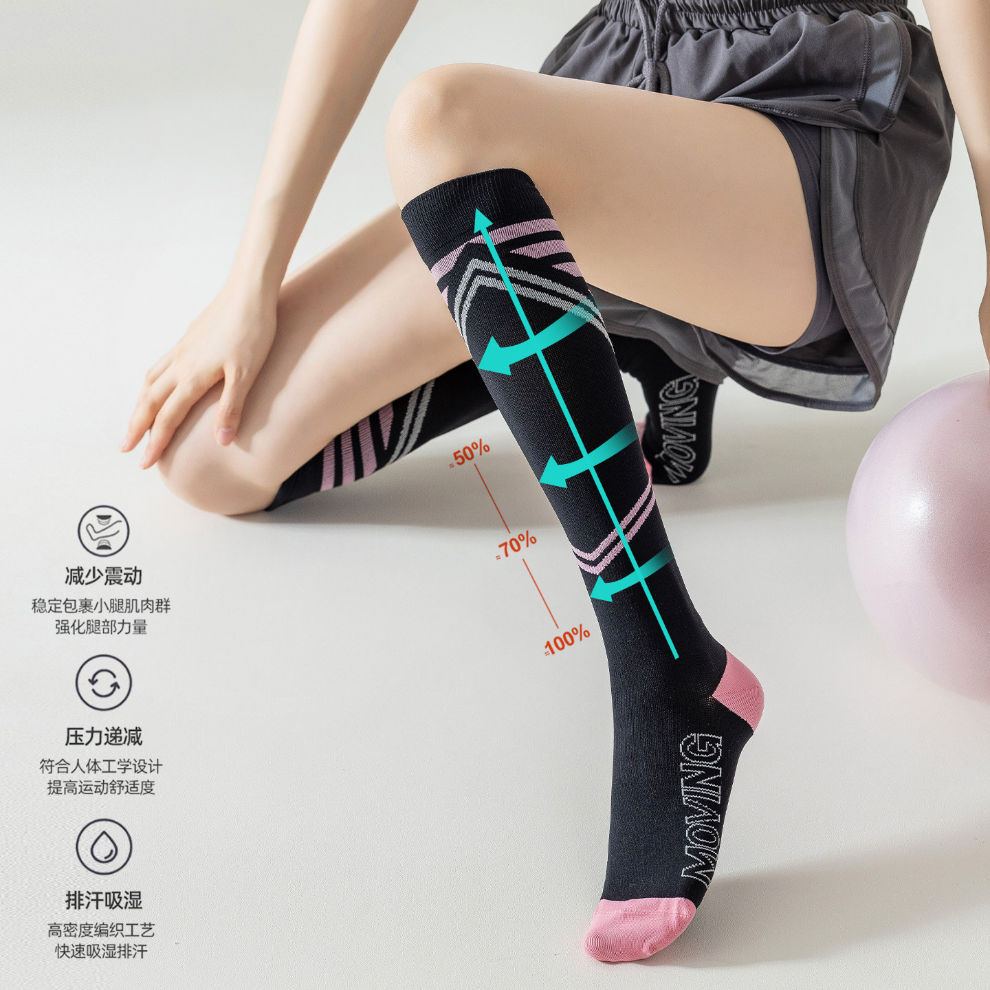 嗨动专业肌能压缩运动袜女长筒瘦腿跑步健身羽毛球跳绳登山小腿袜
