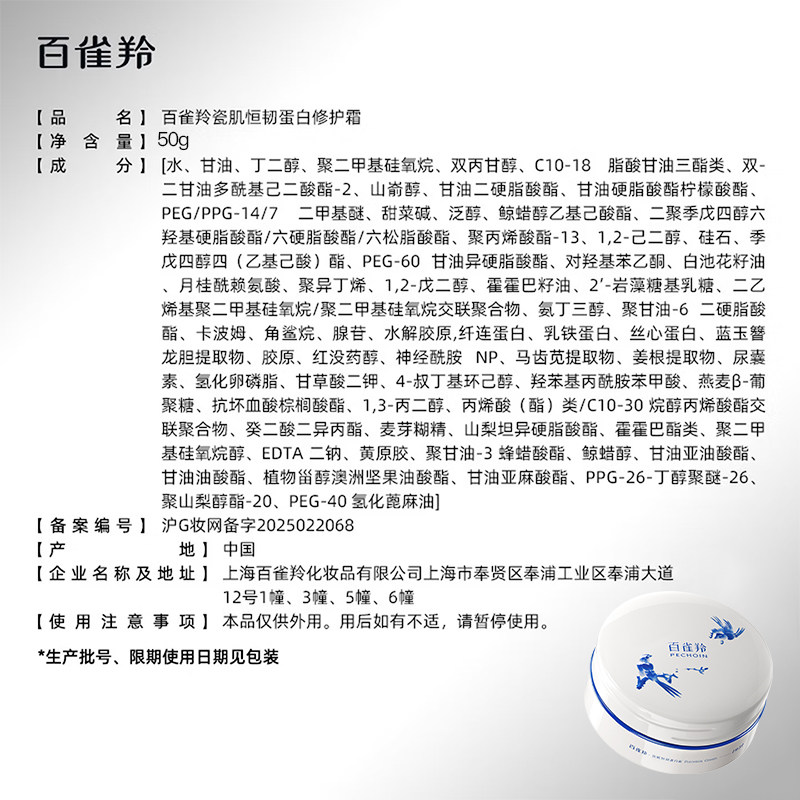 【赵露思同款】百雀羚瓷肌恒韧小瓷罐修护霜保湿滋润面霜舒缓紧致