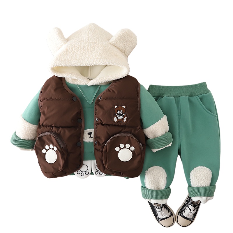 宝宝加绒套装秋冬款外穿儿童衣服男孩婴儿冬装男童初冬穿搭三件套