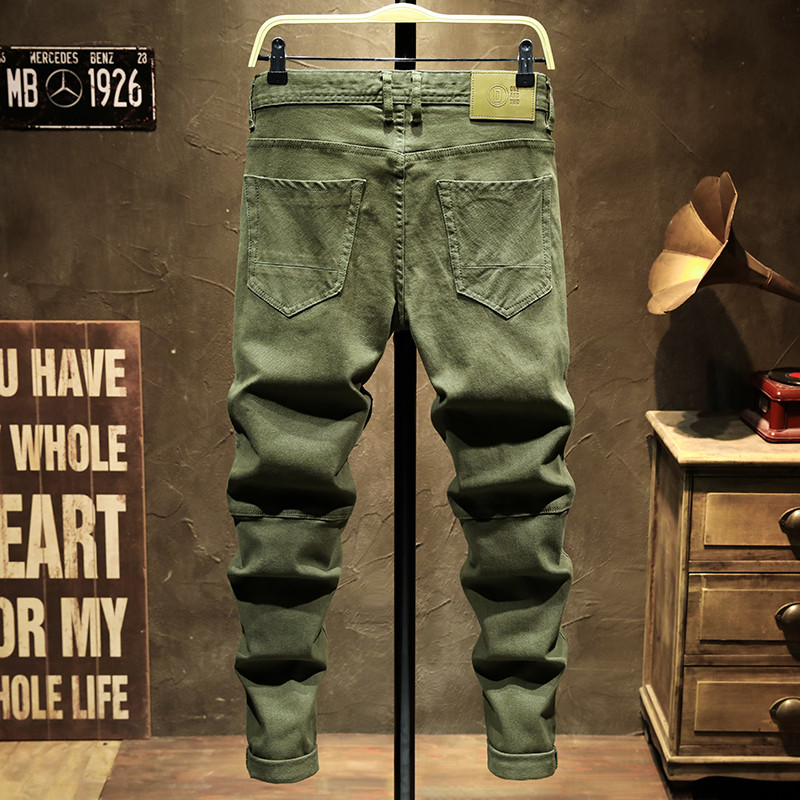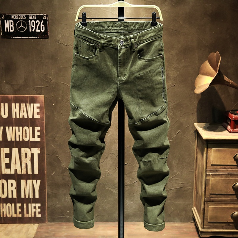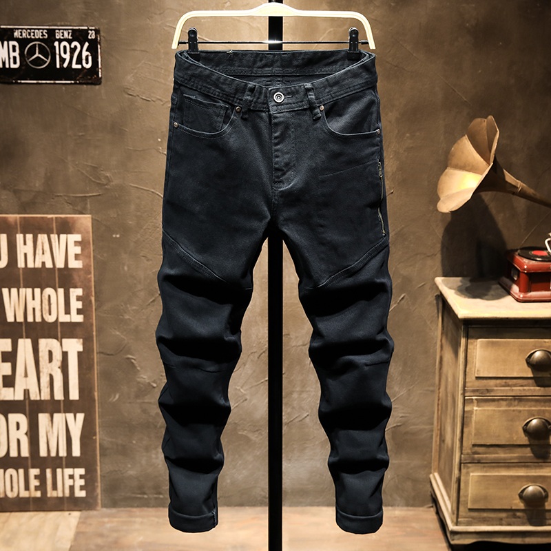 2025年秋冬修身小脚工装拼接休闲裤男弹力时尚牛仔长裤子青年ins