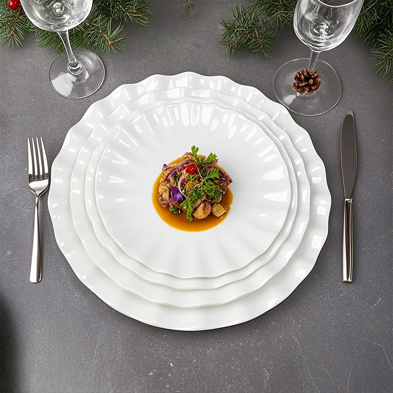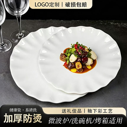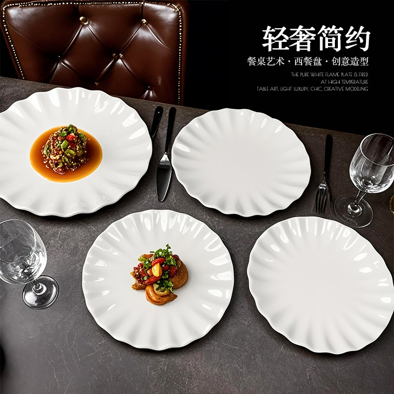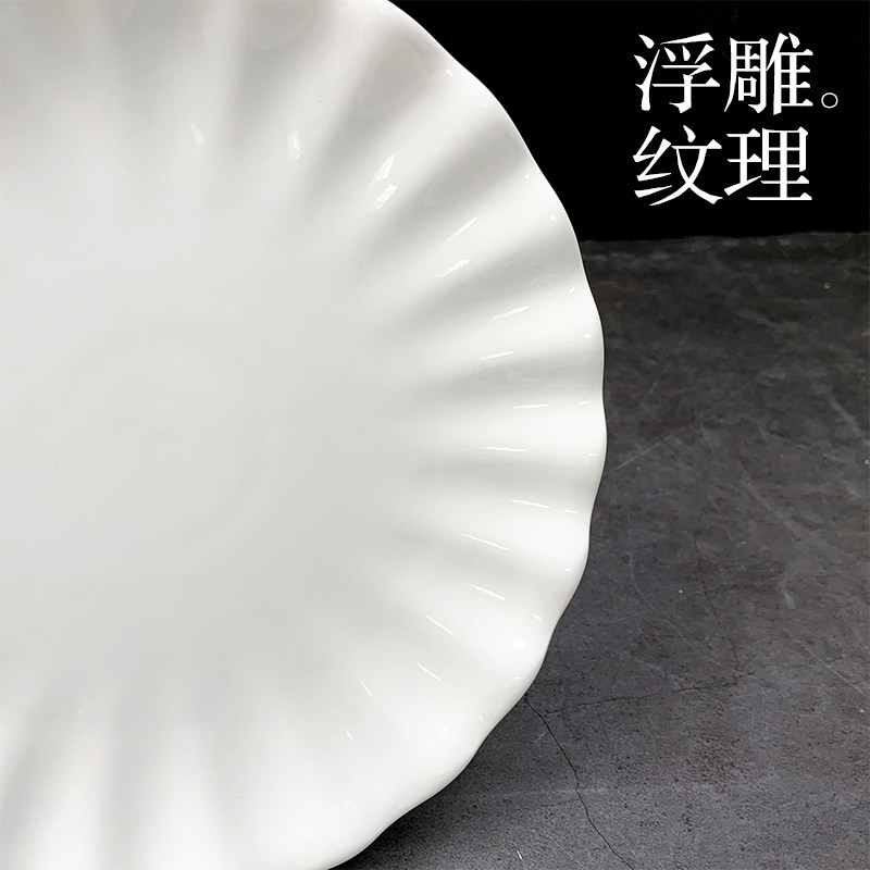 陶瓷荷口牡丹盘不规则餐具纯白新荷叶盘水果盘汤盘饭菜盘餐厅饭店