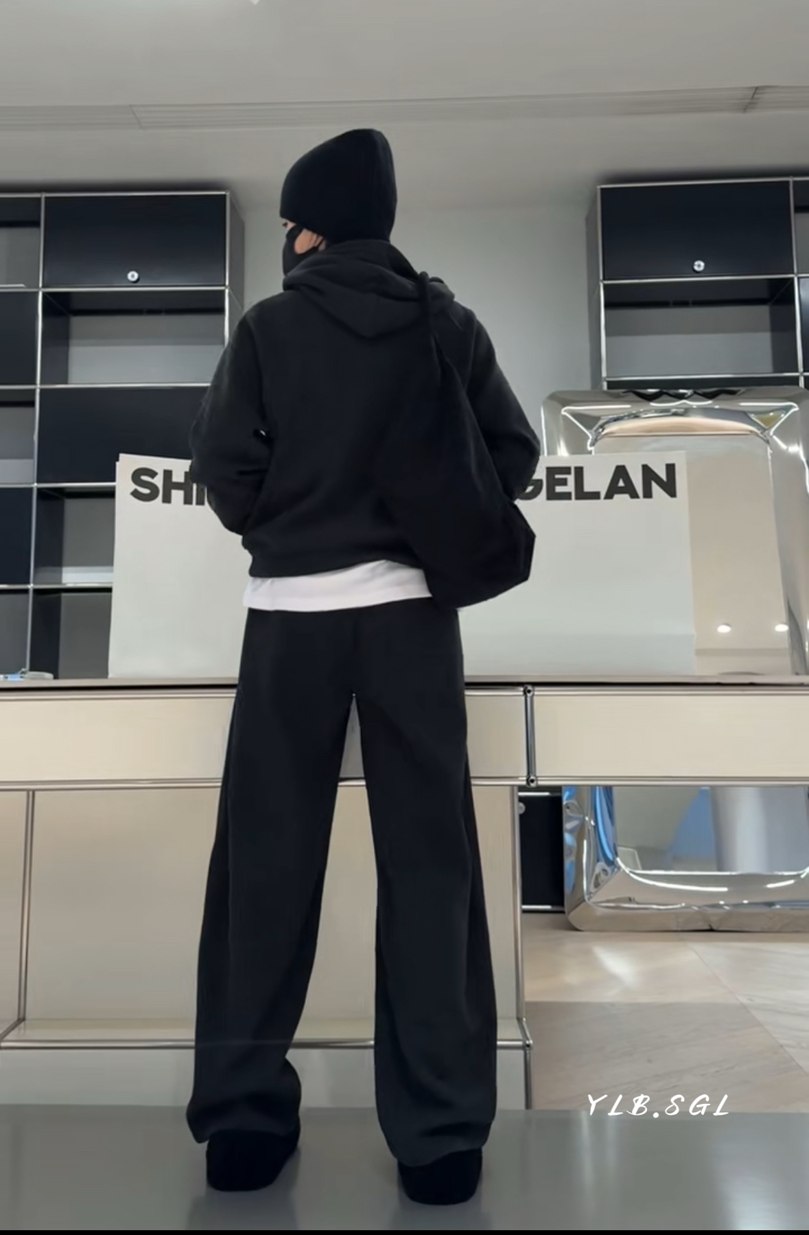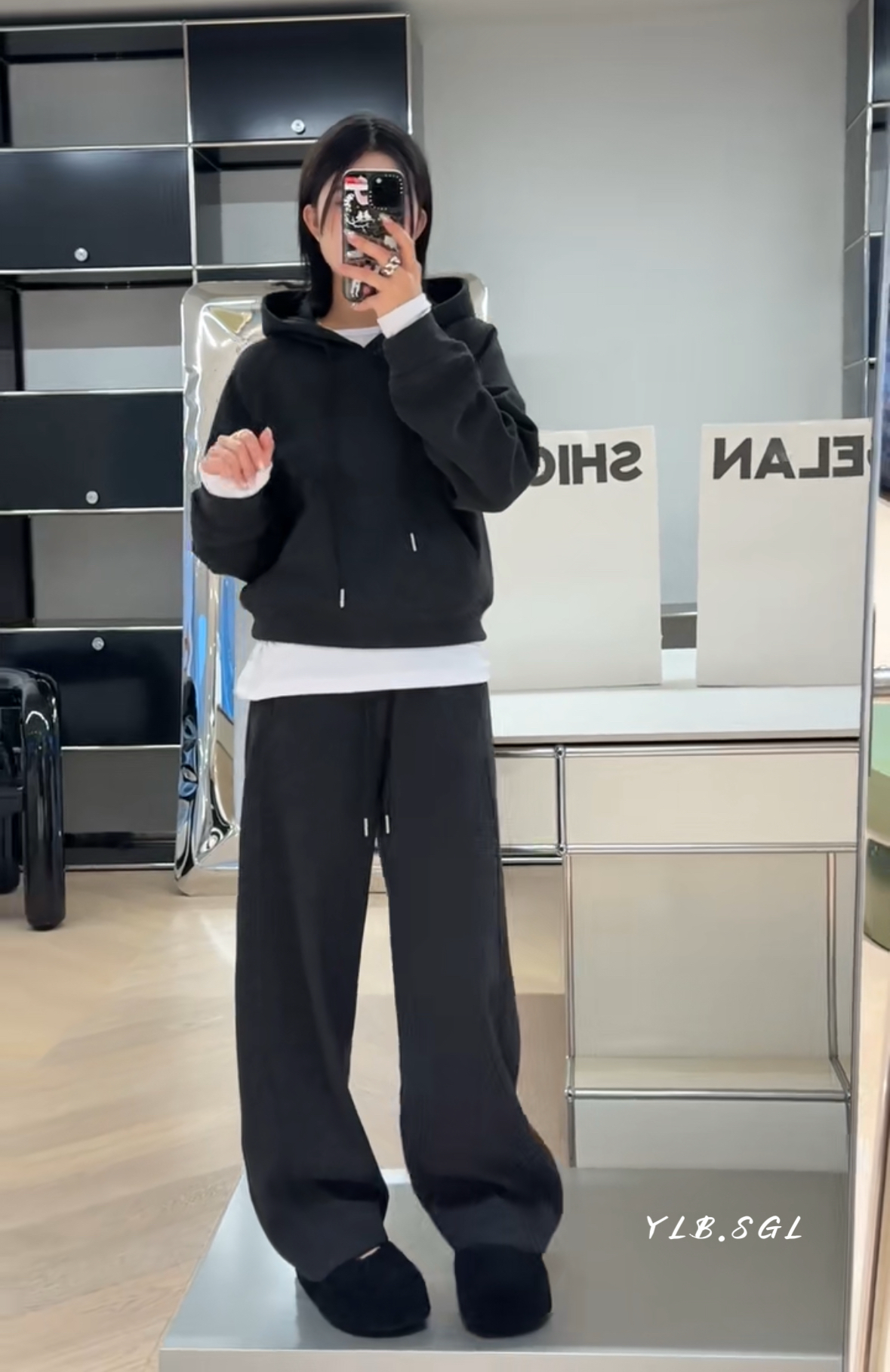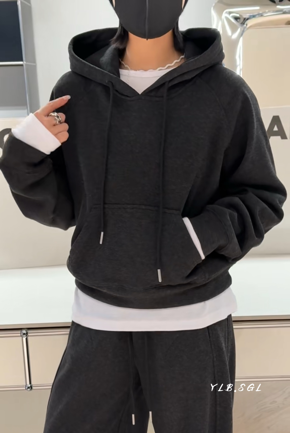 25-963诗歌兰女装2025冬款时尚气质深灰色加绒连帽卫衣卫裤套装女