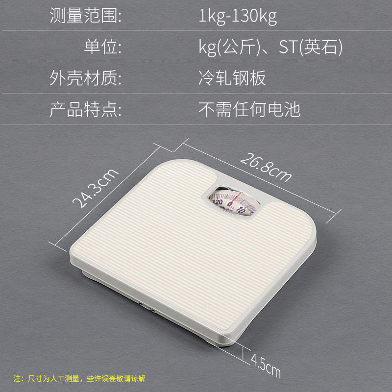 香山机械人体秤精准耐用弹簧秤金属机身家用称重健康秤指针外贸款