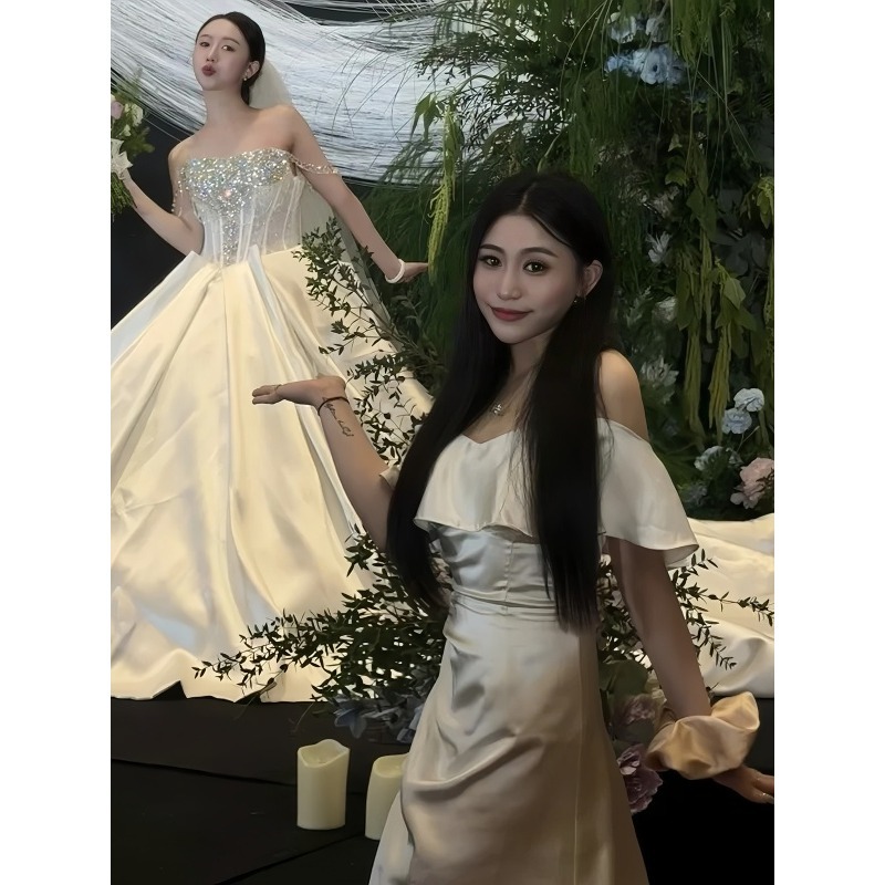 伴娘服新款香槟色缎面礼服高端轻奢高级感成人礼礼服裙平时可穿