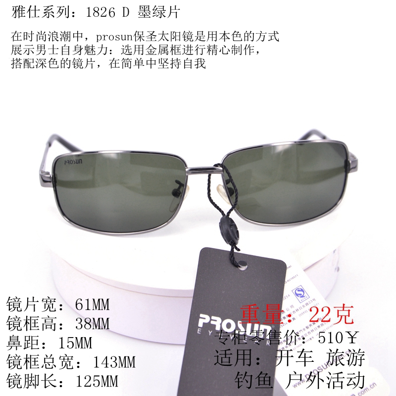 prosun保圣太阳镜防紫外线男士方形驾驶镜钓鱼休闲潮帅墨镜1826 D