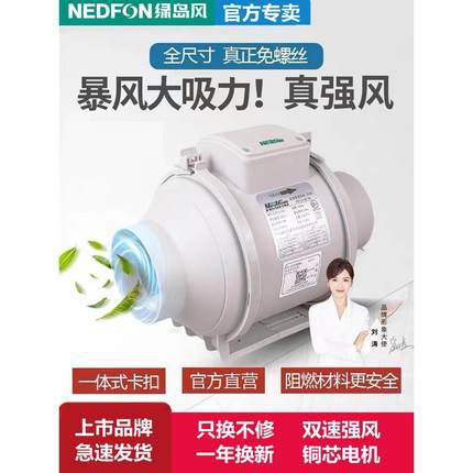 绿岛风斜流管道通风机增压轻音排气扇厨房强力排风机化妆室换气扇