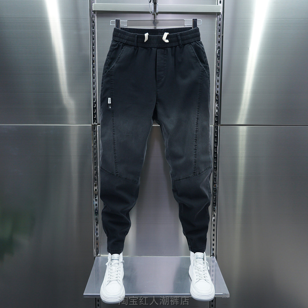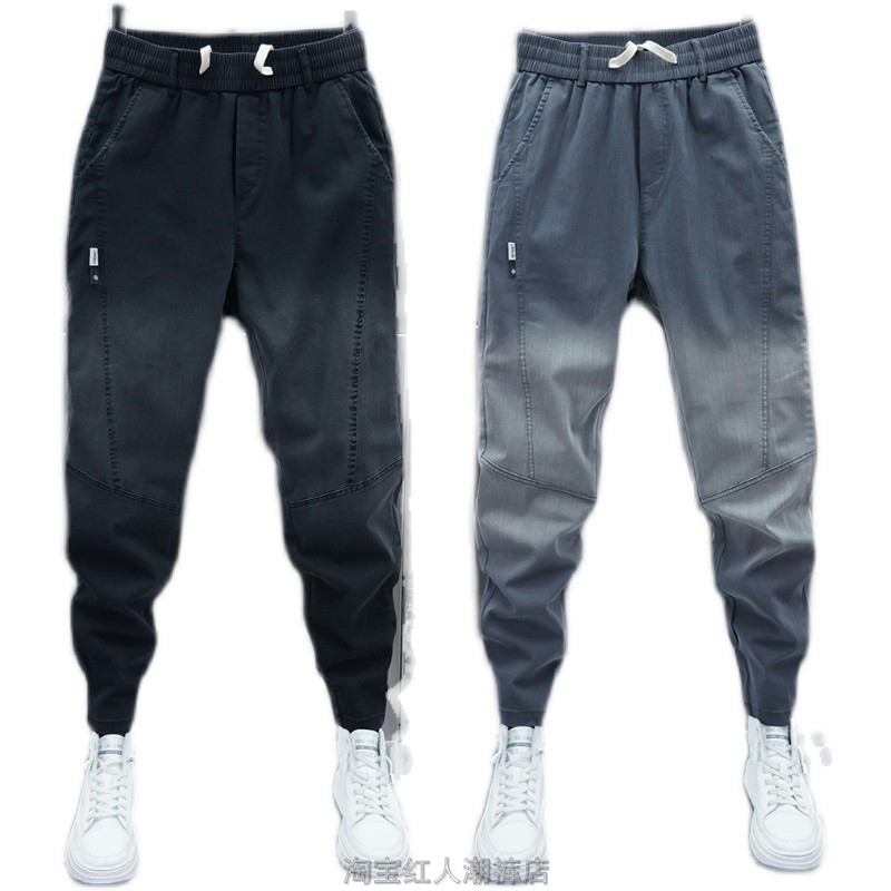 男新款春夏牛仔裤潮牌渐变色拼接修身小脚裤弹力束脚显瘦休闲裤子
