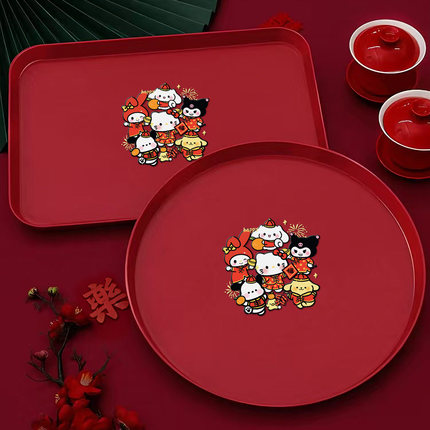 零食盘过年水果盘新年家用干果碟子红色喜庆糖果盘子客厅茶几干果