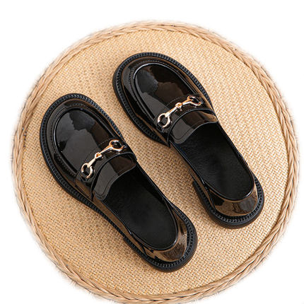 头层牛皮乐福鞋女平底黑色小皮鞋