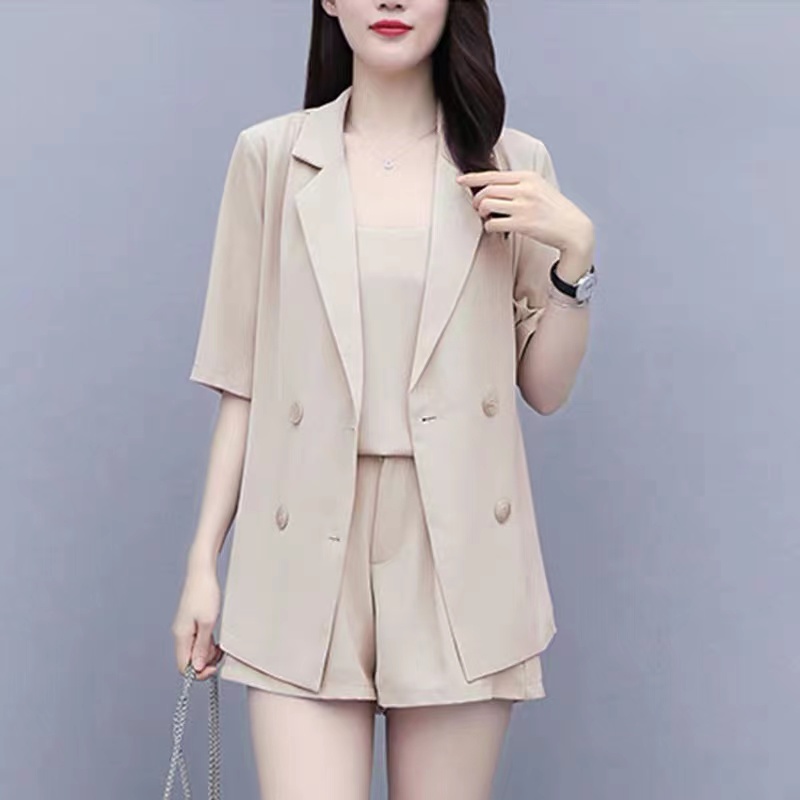 西装短裤套装女夏2025新款大码胖妹妹遮肉显瘦洋气休闲网红三件套