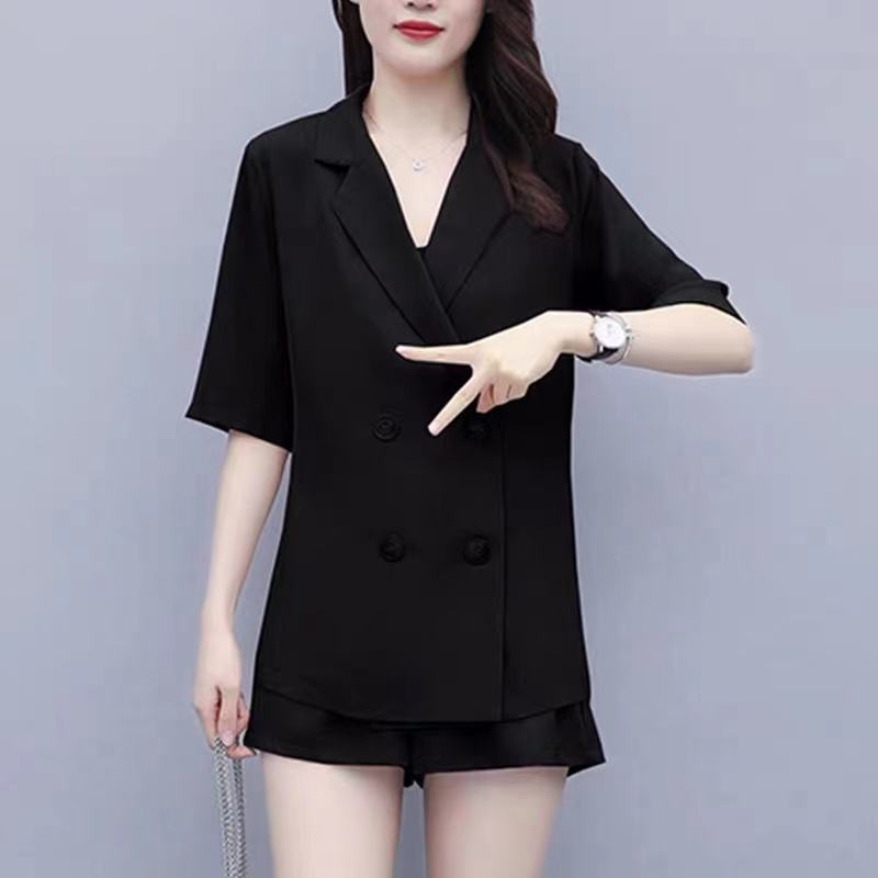 西装短裤套装女夏大码胖妹妹