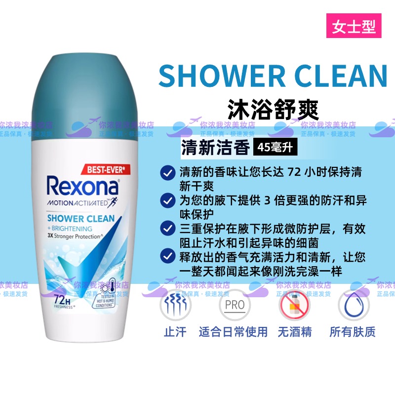 进口Rexona舒耐止汗露滚珠香体走珠持久干爽淡香女士男士腋下除臭