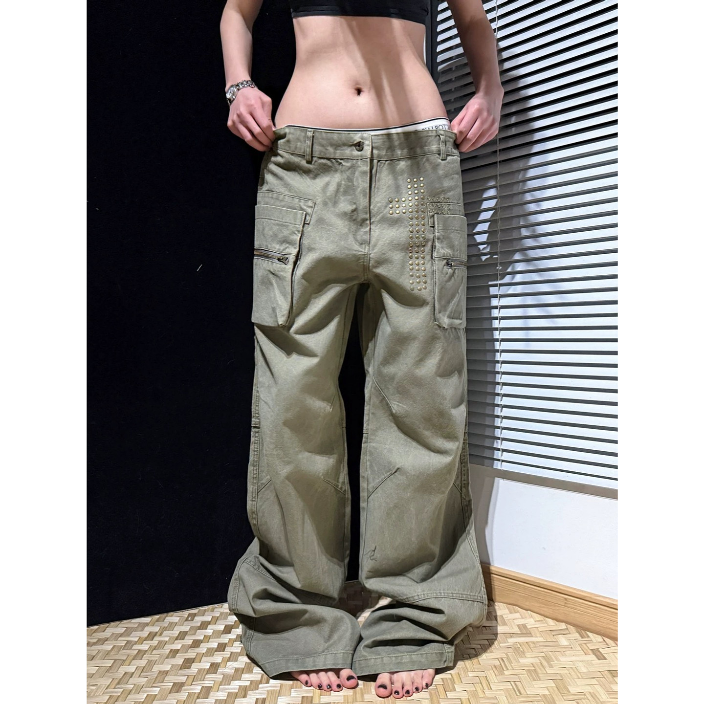 美式复古高街铆钉工装宽松显瘦裤