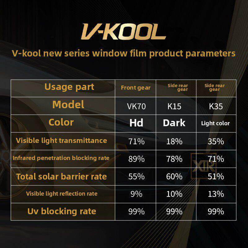 伟固隔热膜汽车膜太阳能膜Vk70+K15/K35全汽车隔热膜玻璃膜防爆汽