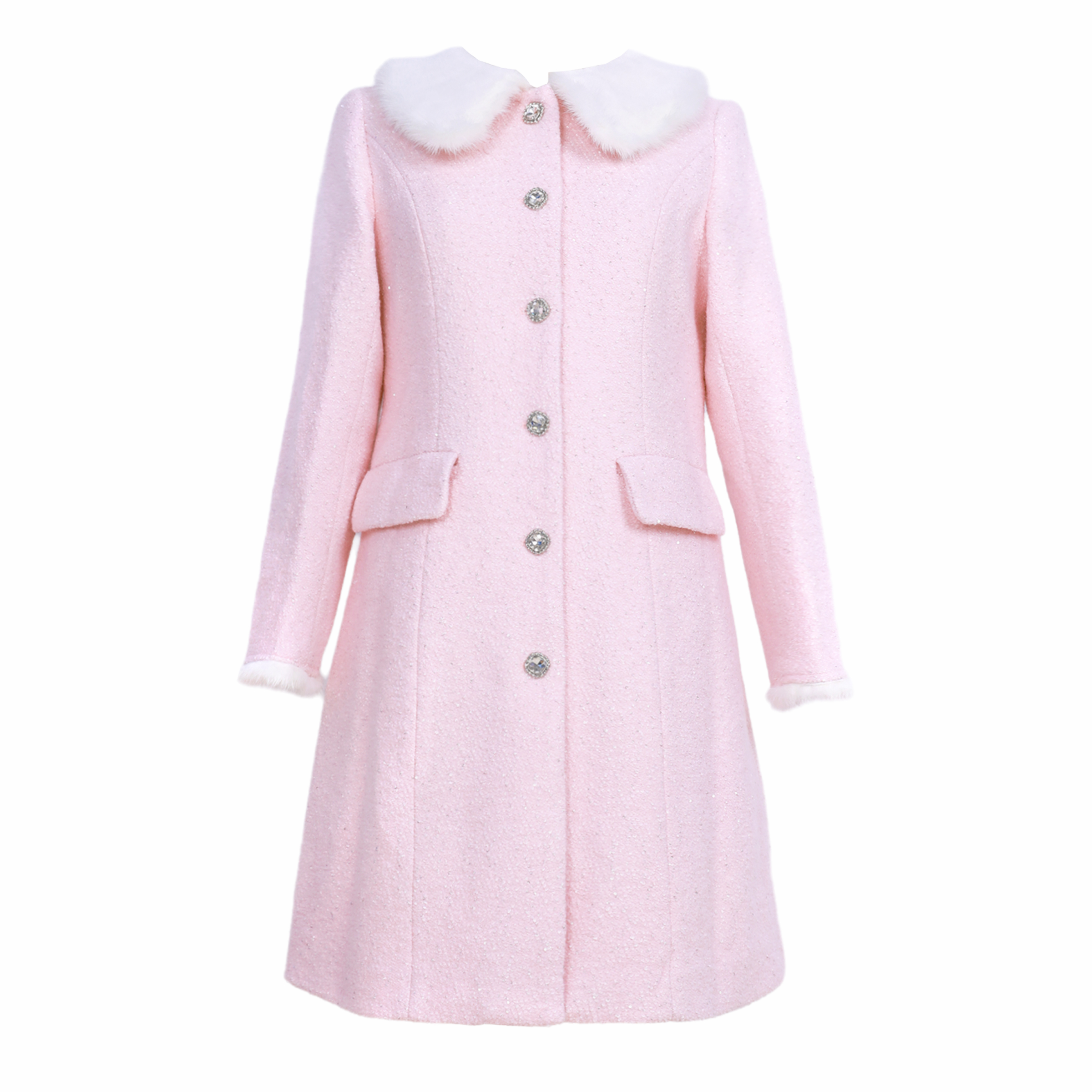 2025冬季新款大码女装减龄宽松外套胖MM毛领粉色中长毛呢大衣洋气