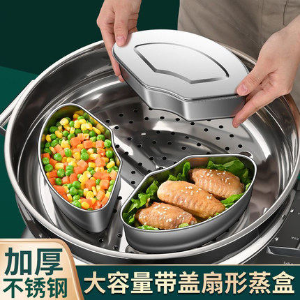 304不锈钢分隔蒸盘不串味扇形厨房通用蒸碗蒸格电饭煲蒸米饭神器