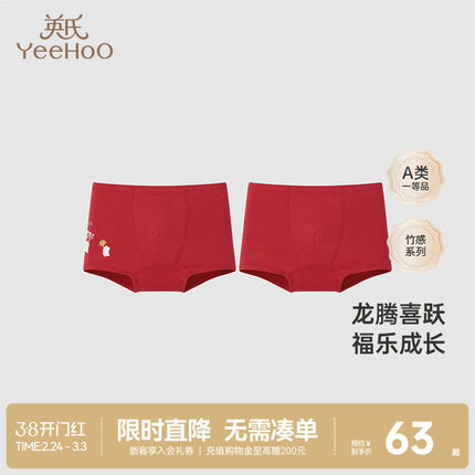 【商场同款】英氏儿童红色内裤男童女童本命年平角短裤新年四角裤
