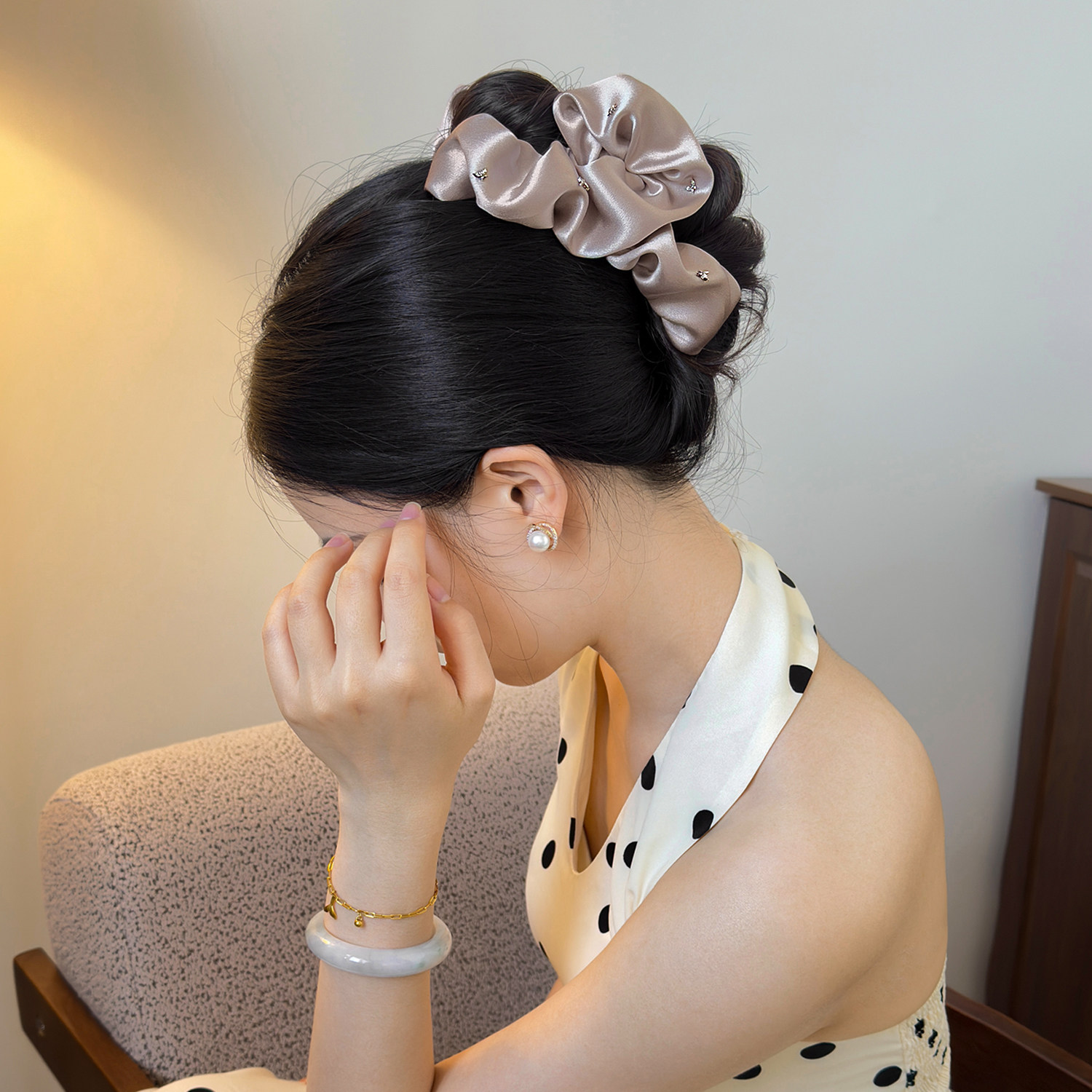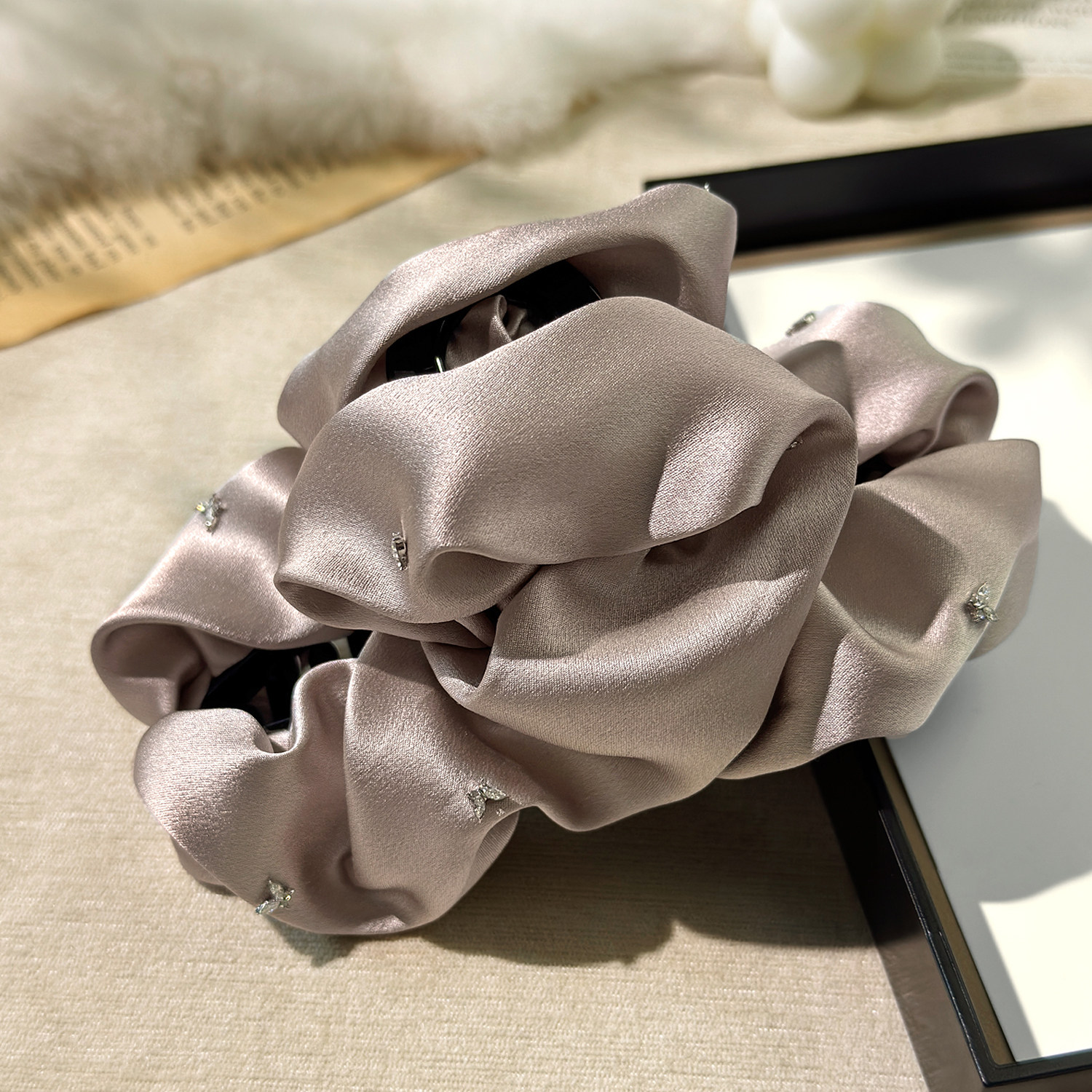 真丝云朵抓夹女高级感缎面鲨鱼夹