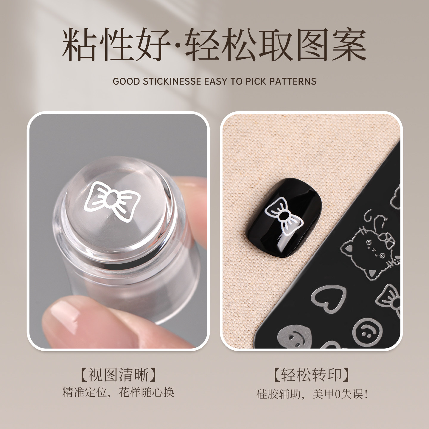 美甲小鼻嘎可擦拭硅胶印章新款高透转印印花钢板多功能指甲工具