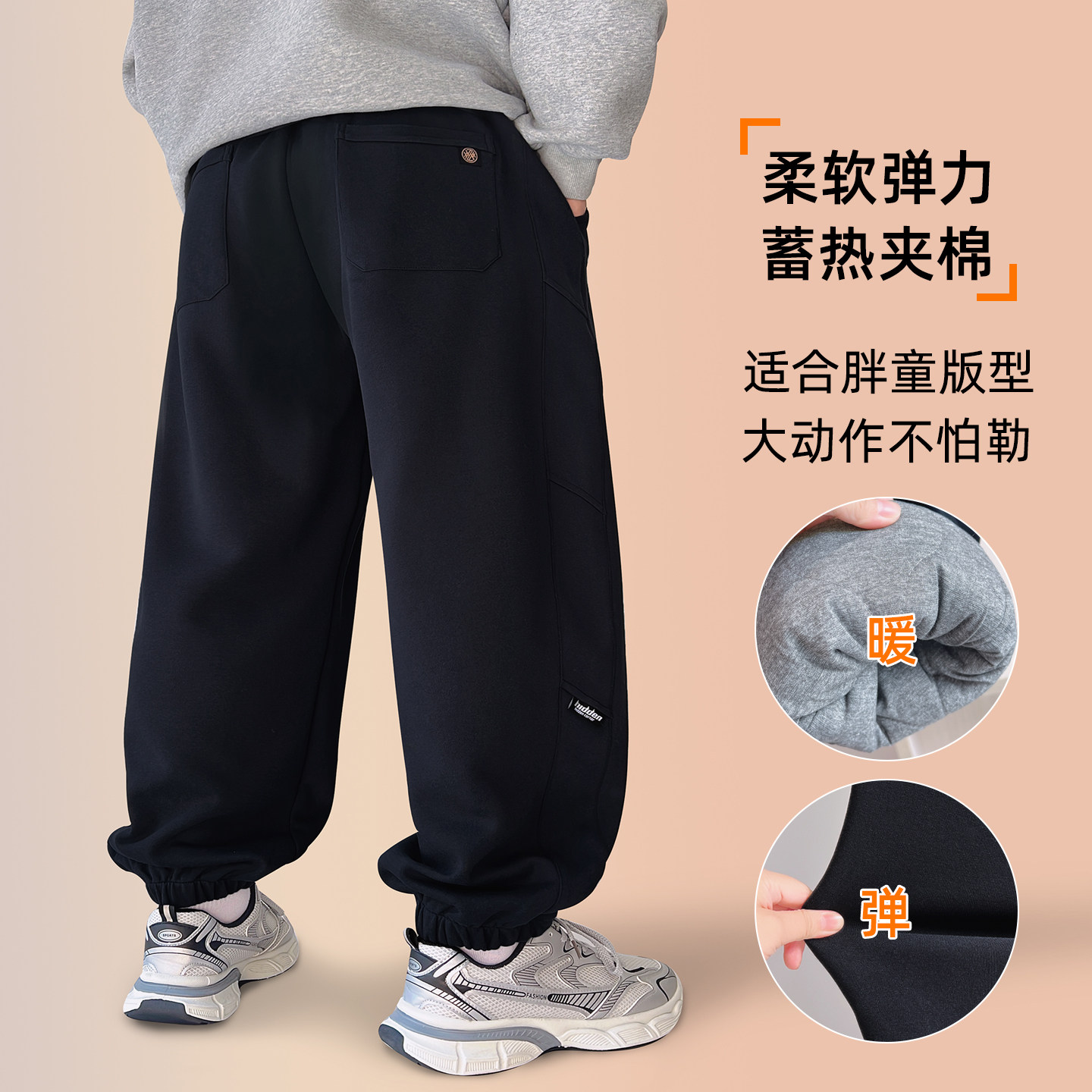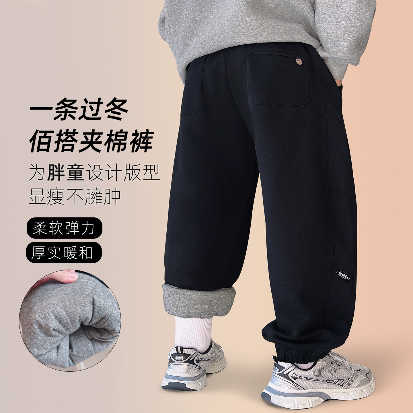 胖童裤子冬季加厚男童运动长裤夹棉休闲加肥宽松卫裤中大童棉裤潮