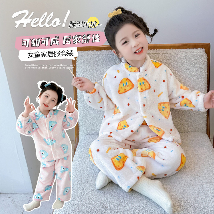 儿童秋冬法兰绒睡衣女童冬季加绒加厚款保暖宝宝珊瑚绒家居服
