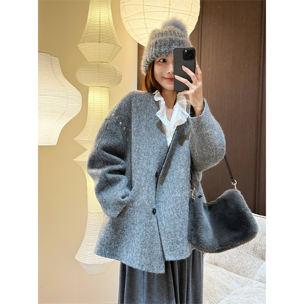【唐悠悠mgdm】木耳边拼接纯棉宽松衬衫女秋法式立领百搭白色衬衣
