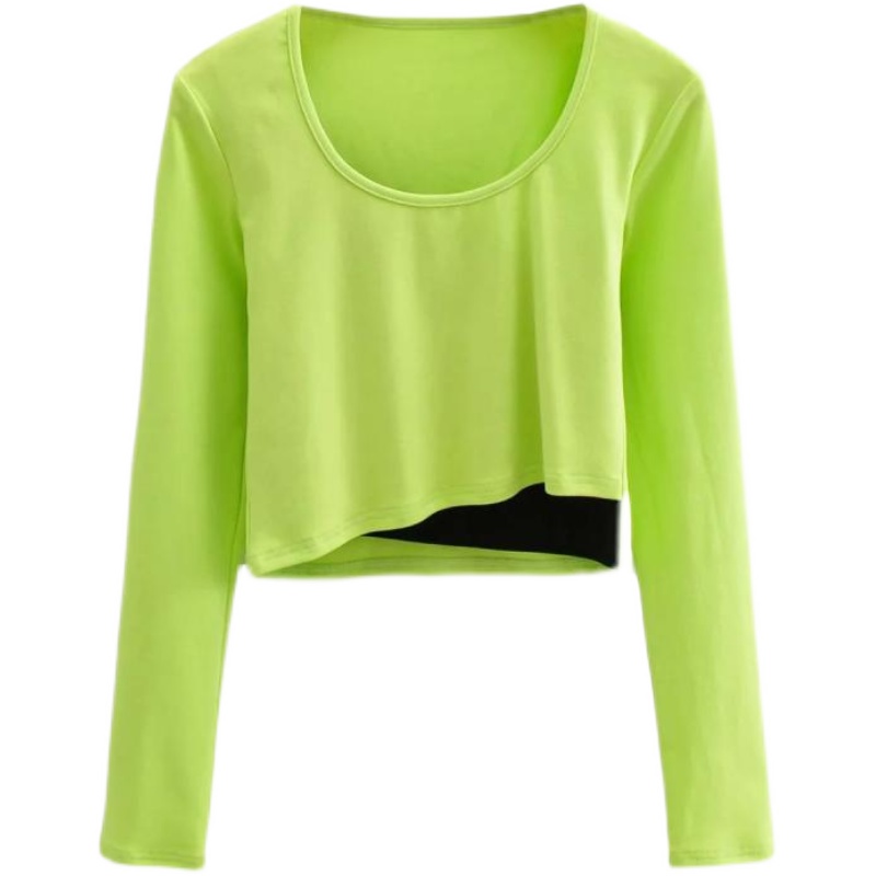 假两件拼色短款高腰靓女T恤长袖