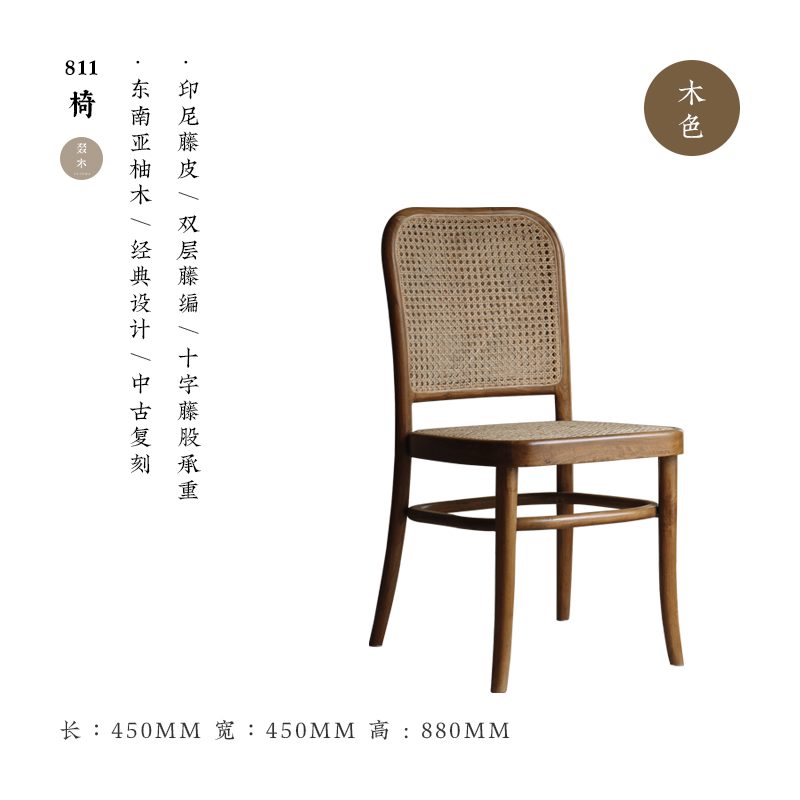 叕木/811号椅 |索耐特经典复刻设计师中古实木藤编餐椅侘寂风椅子